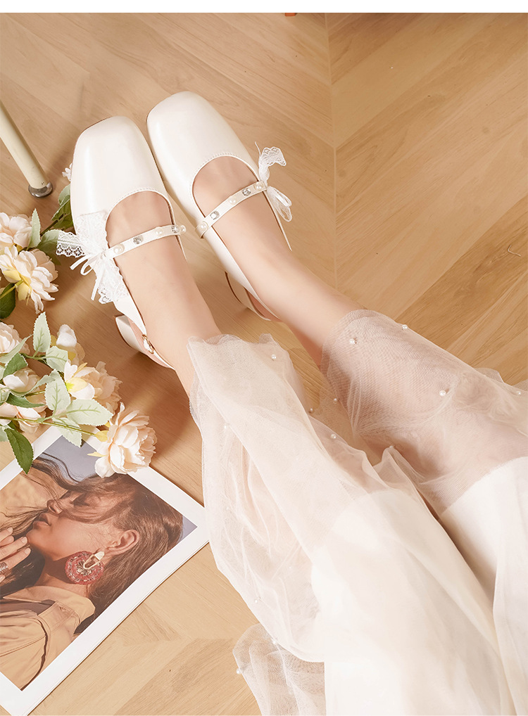 여성용 프렌치 토캡 하프 슬리퍼 2025 봄 여름 신상 로우힐 레이스 보우 메리제인 두꺼운 굽 샌들