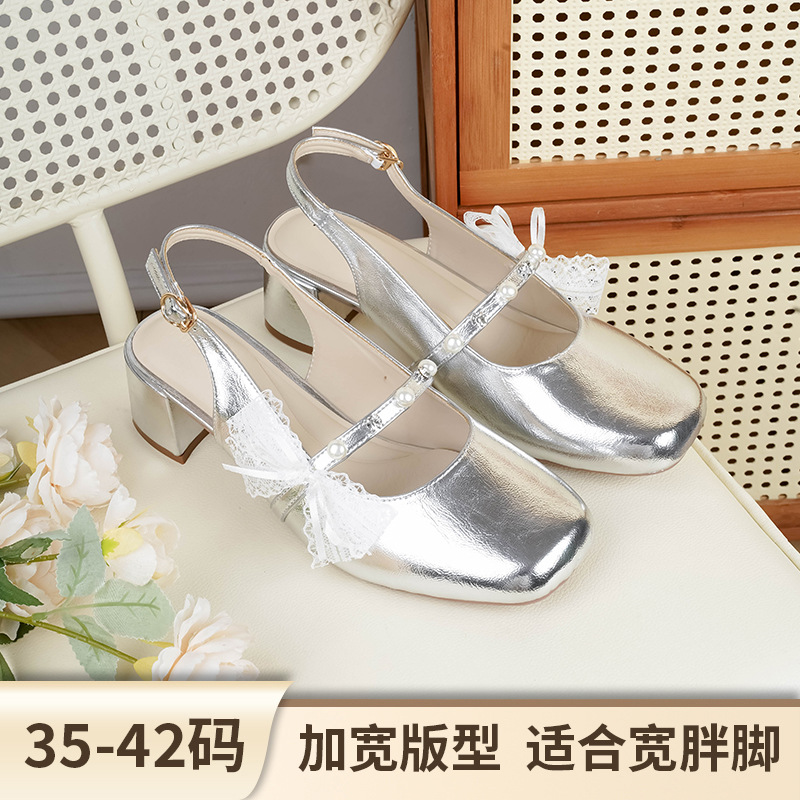 여성용 프렌치 토캡 하프 슬리퍼 2025 봄 여름 신상 로우힐 레이스 보우 메리제인 두꺼운 굽 샌들스토어 가기