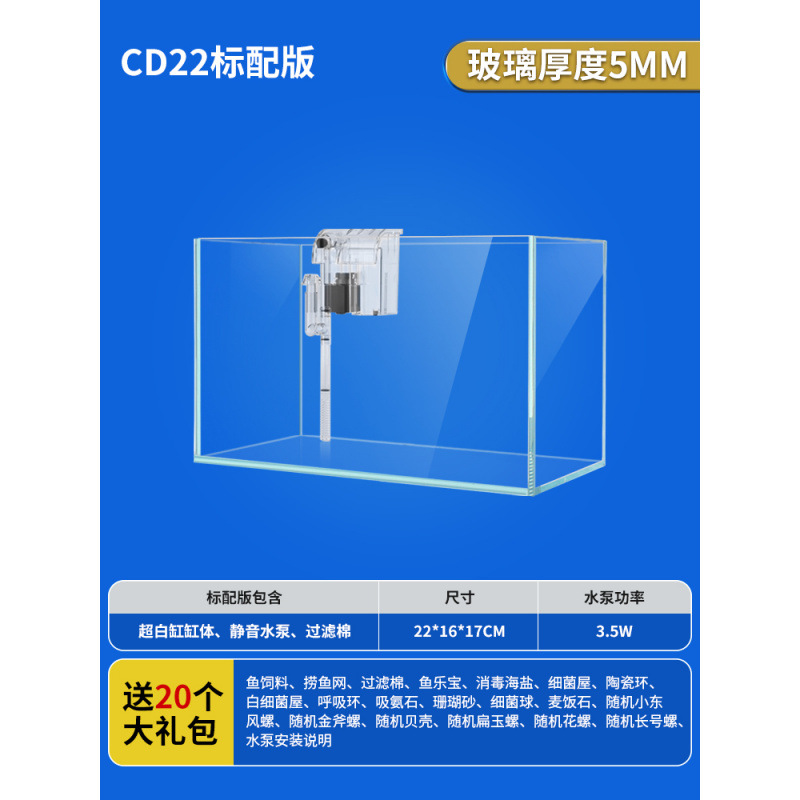 • 22x16x17cm 울트라 화이트 탱크 + 필터 펌프 + 조명 LED/무료 선물 패키지★⚑