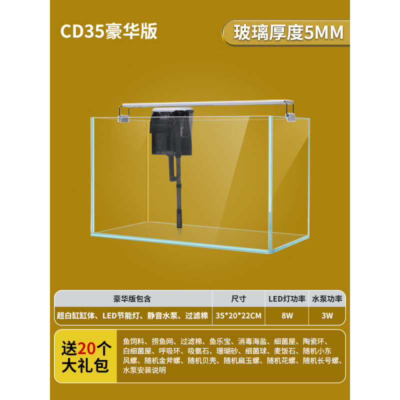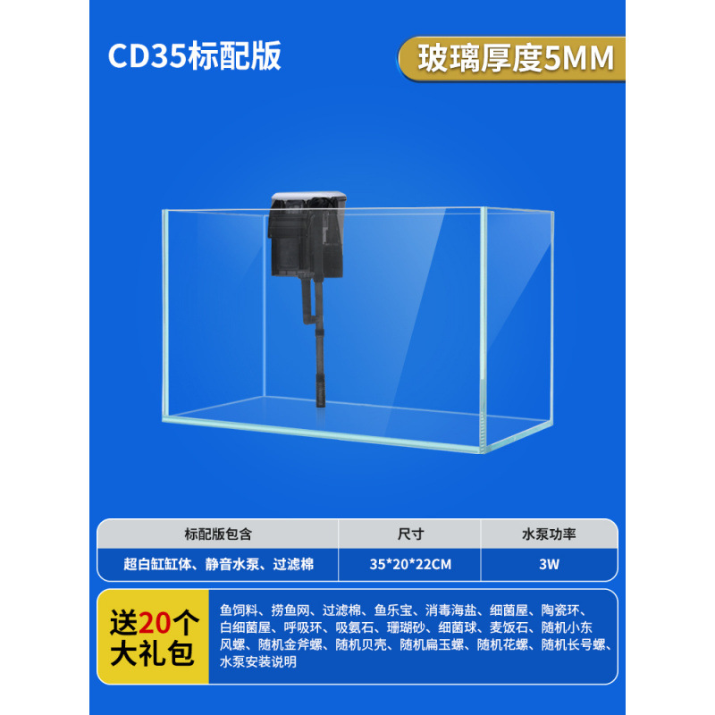 • 35x20x22cm 울트라 화이트 탱크 + 필터 펌프 + 조명 LED/무료 선물 패키지★⚑