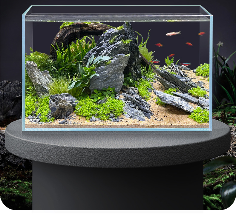 2025 새로운 슈퍼 화이트 실린더 직사각형 유리 금붕어 탱크 홈 거실 작은 데스크탑 거북이 탱크 생태 잔디 탱크