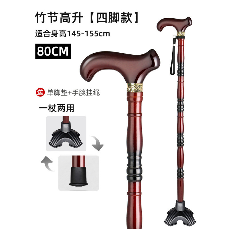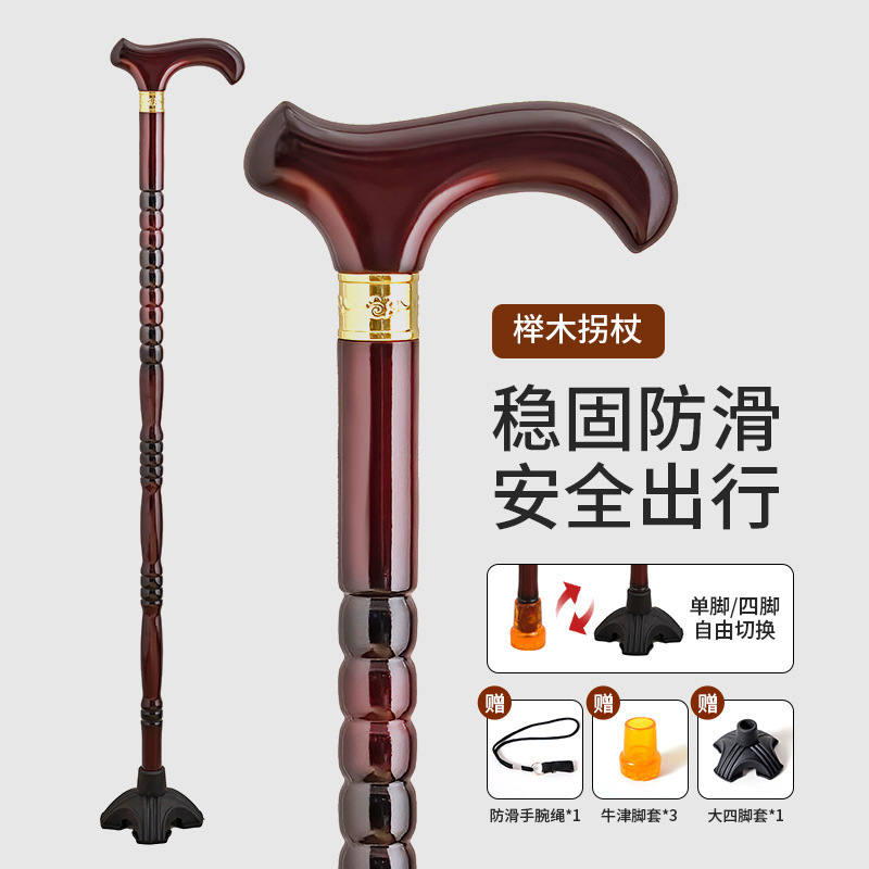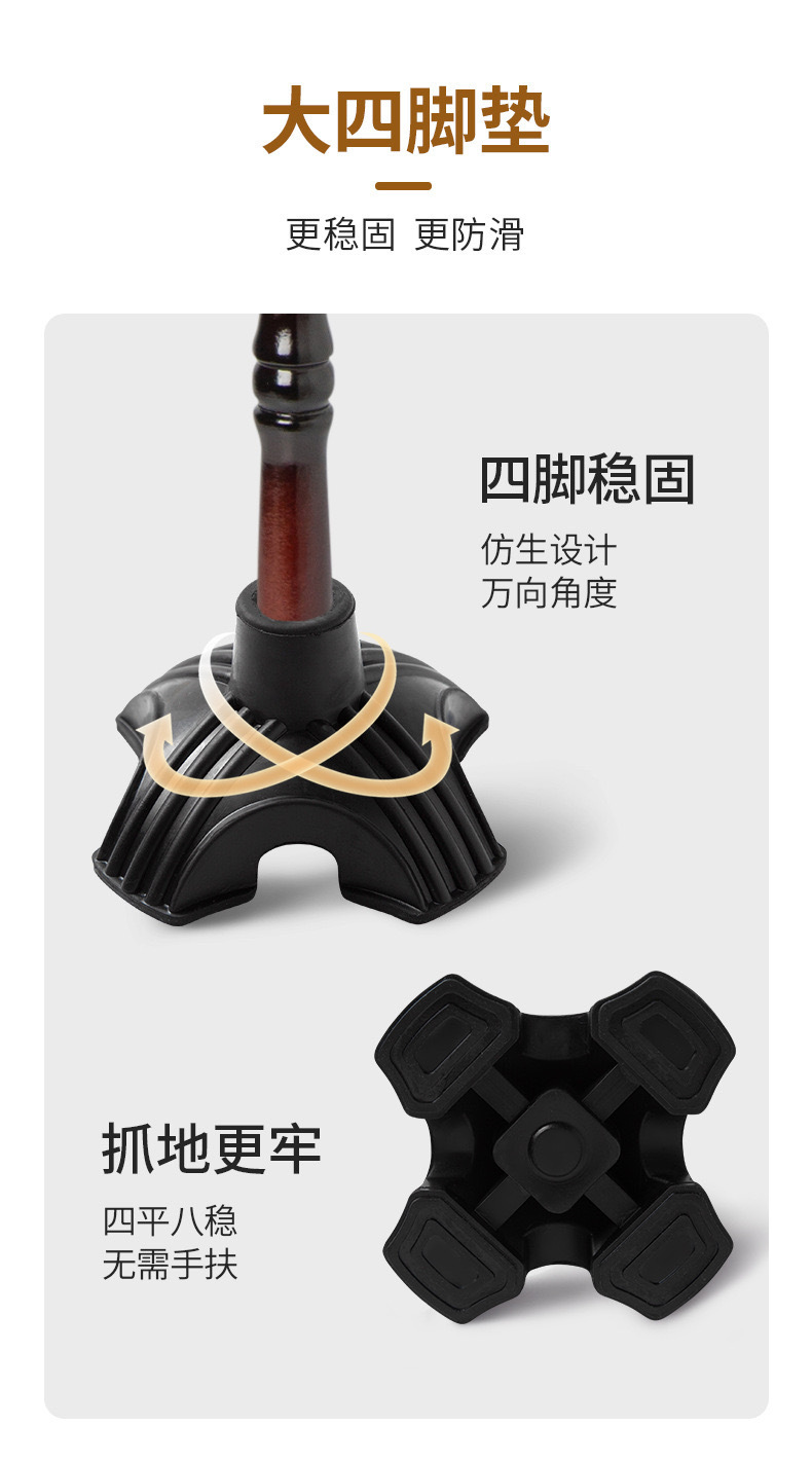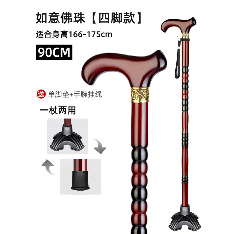 노인용 원목 지팡이, 4발 미끄럼 방지 치킨윙 우드 지팡이, 노인용 지팡이, 가볍고 튼튼한 수전 마호가니 팔걸이스토어 가기