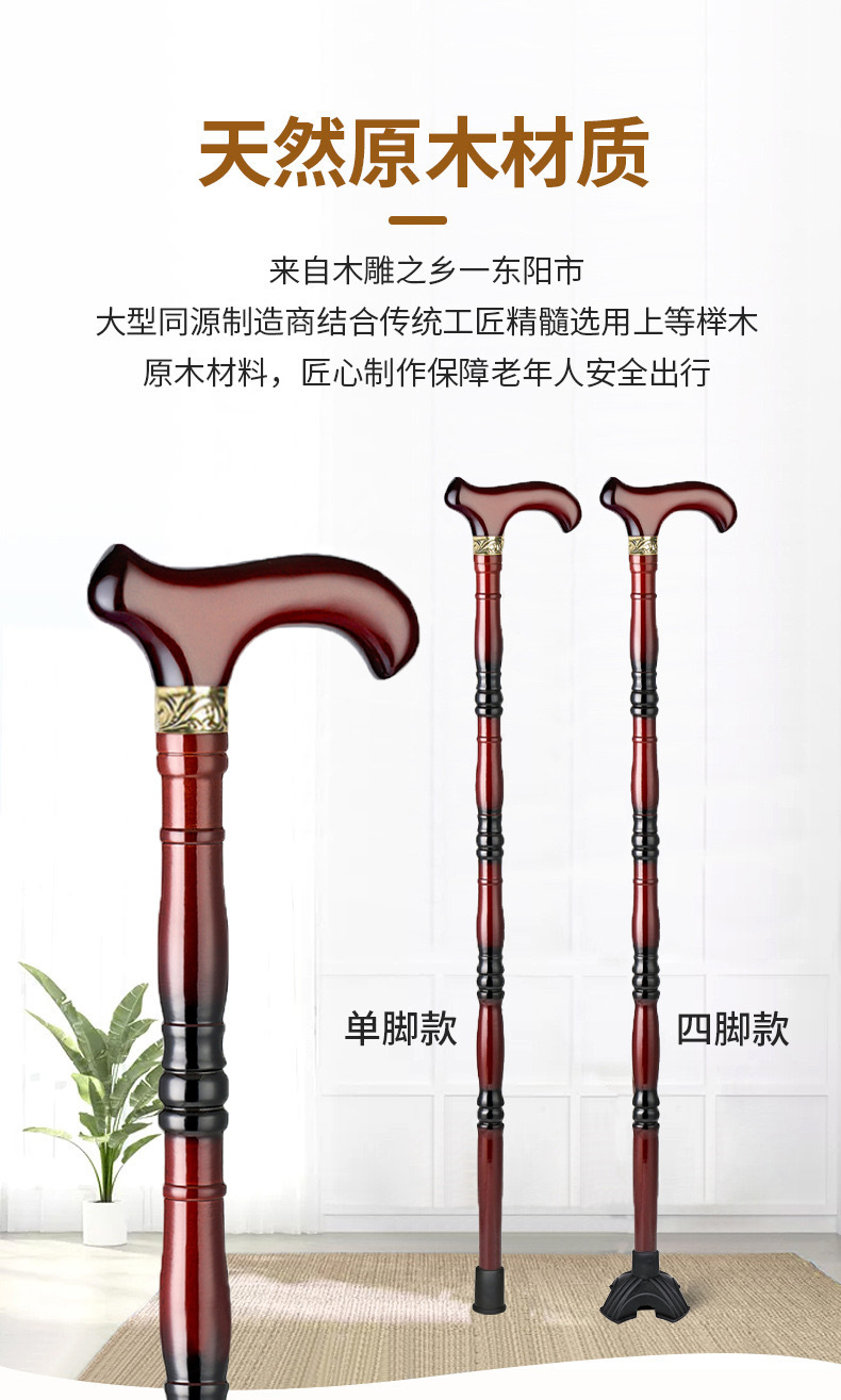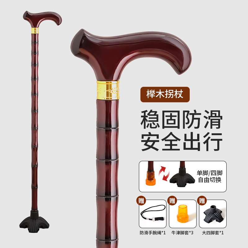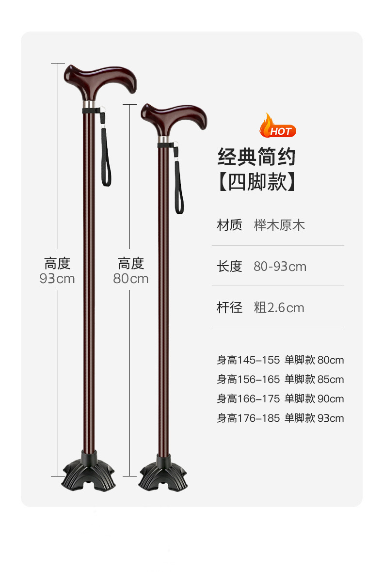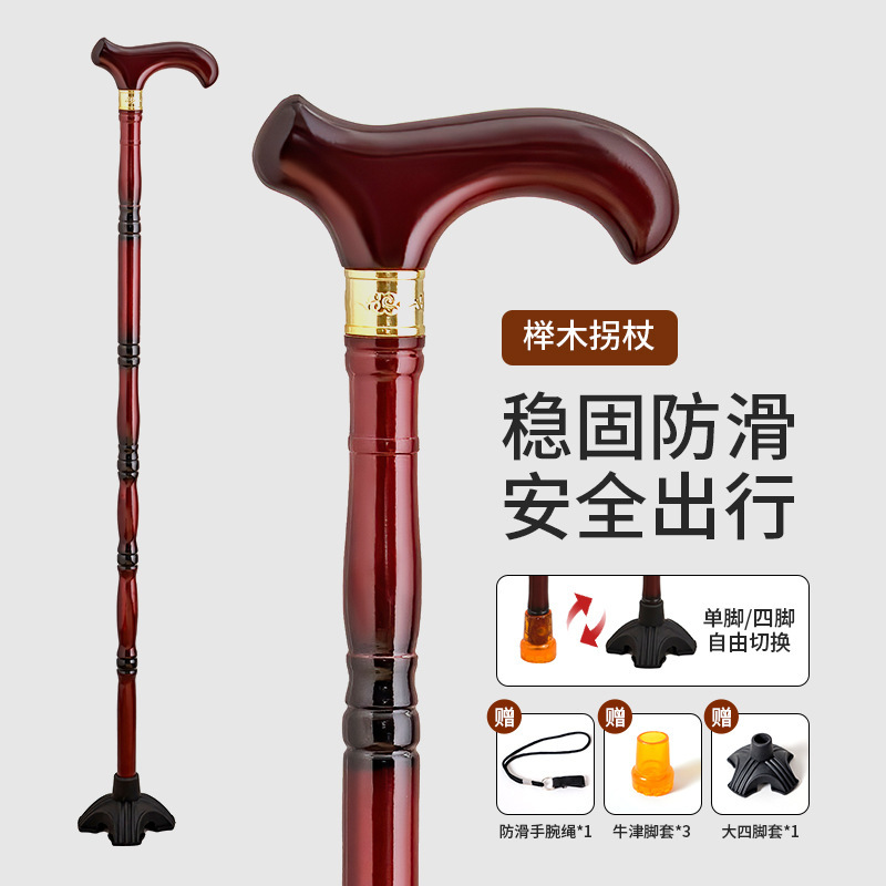 노인용 원목 지팡이, 4발 미끄럼 방지 치킨윙 우드 지팡이, 노인용 지팡이, 가볍고 튼튼한 수전 마호가니 팔걸이스토어 가기