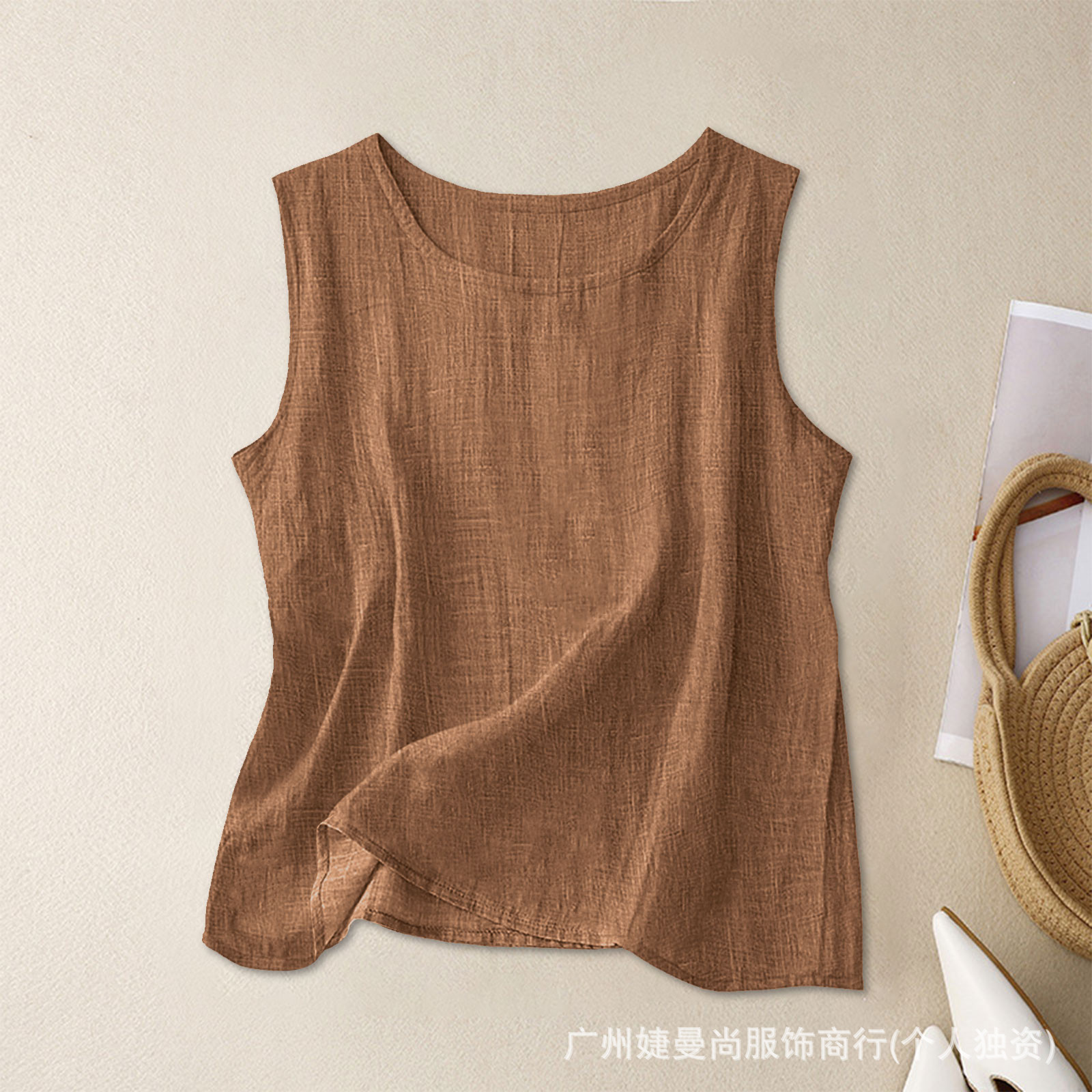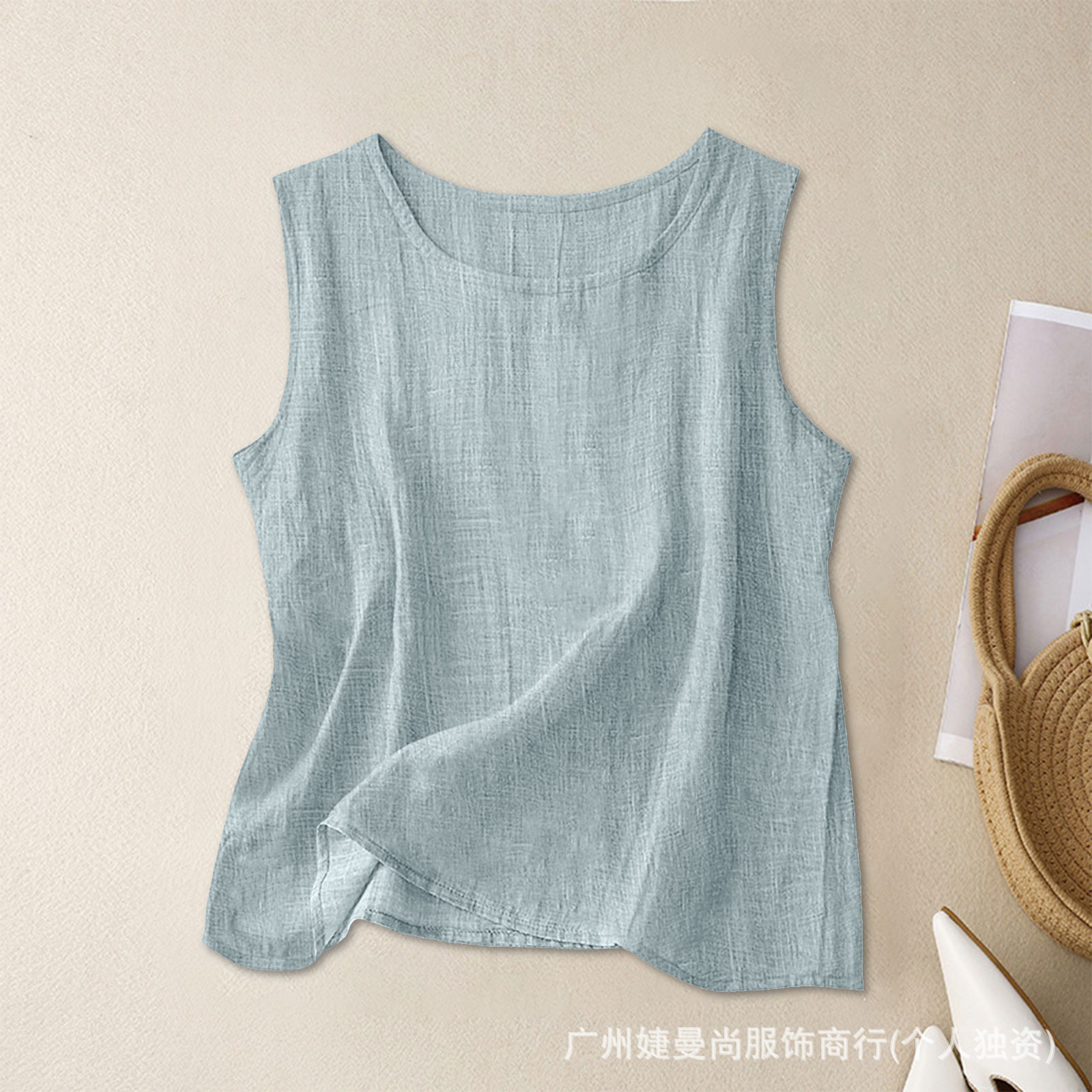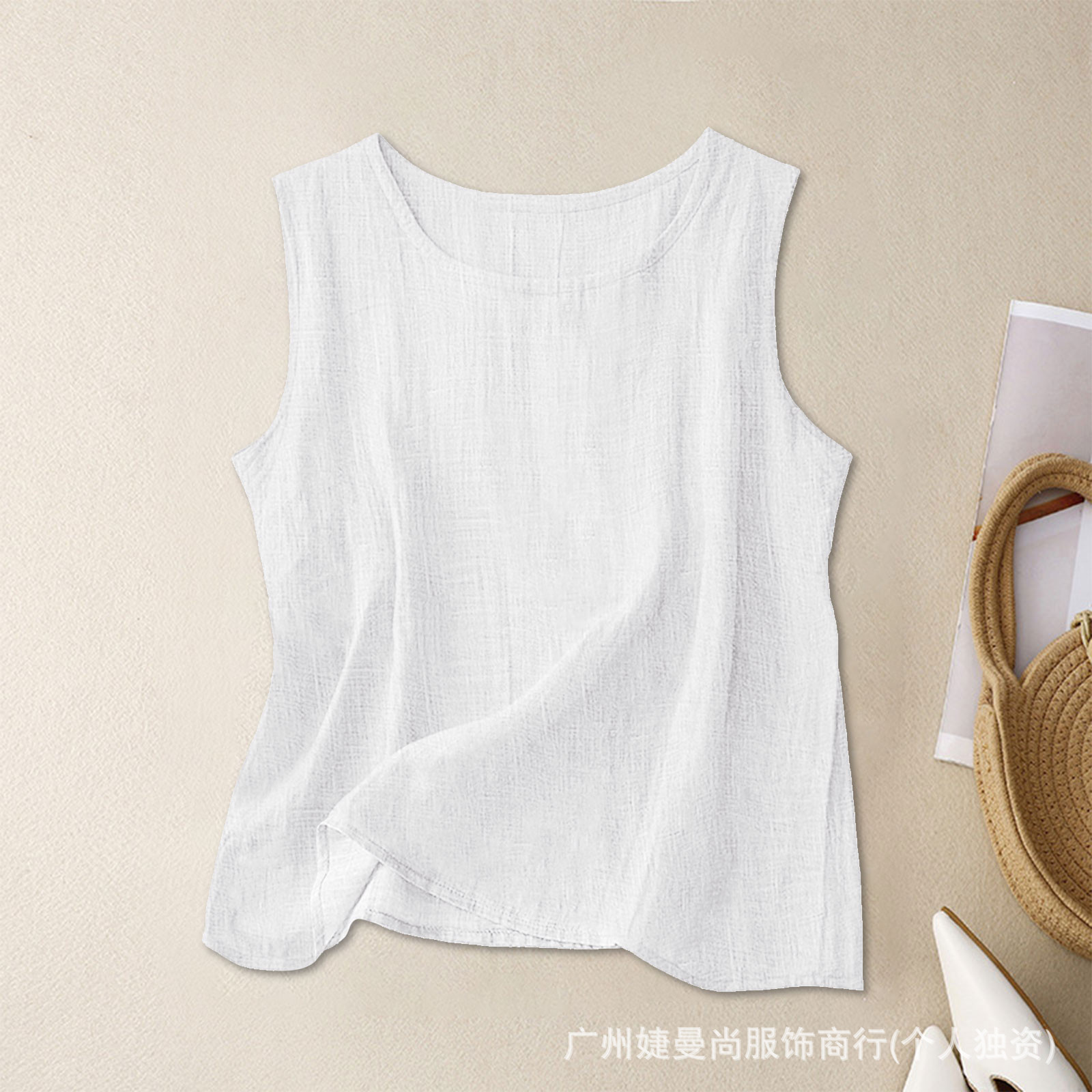 2025 대나무 코튼 조끼 바닥 셔츠 여성 여름 느슨한 내부 탑 라운드 넥 민소매 다목적 기질 통근스토어 가기