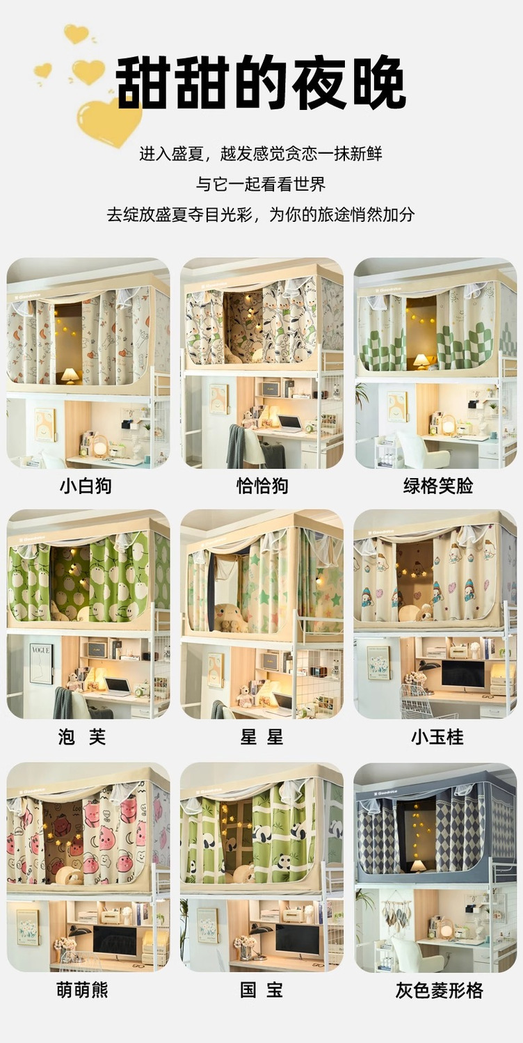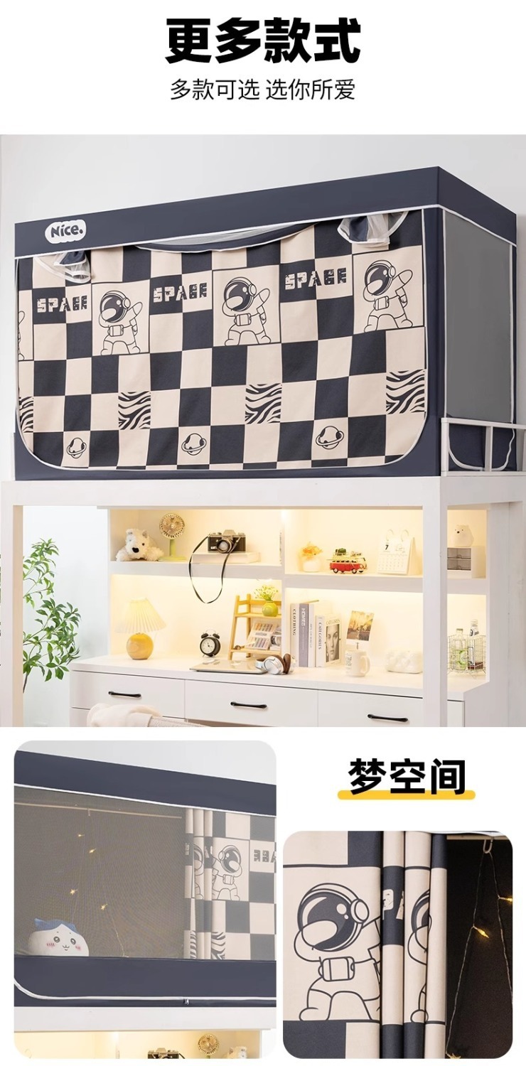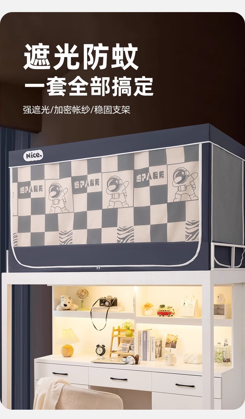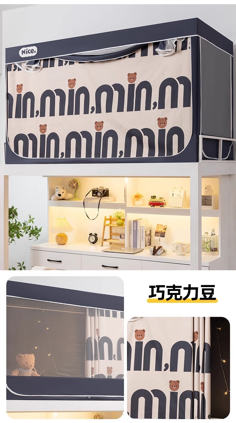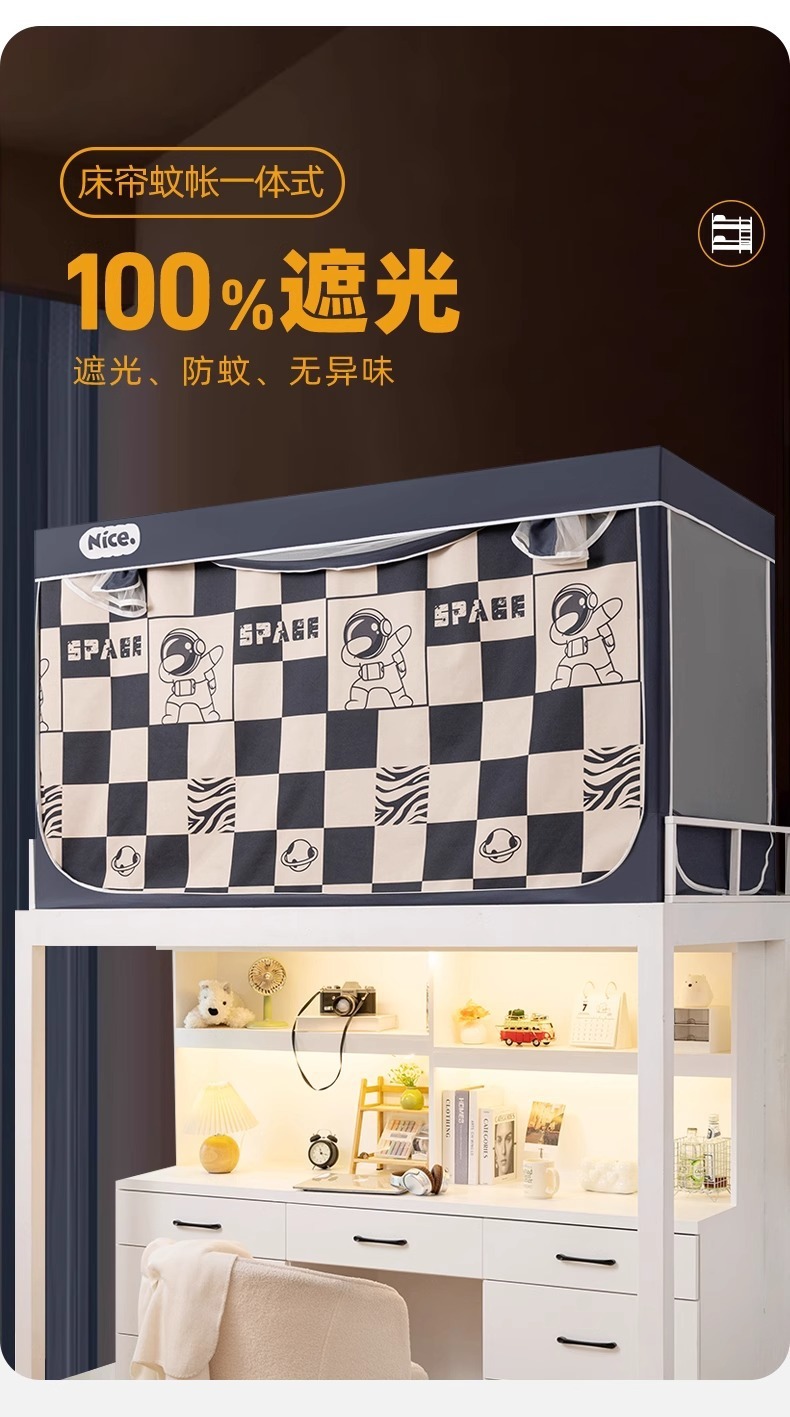 2025년 신입생 기숙사 모기장 일체형 상층 및 하층 모두가 완전히 둘러싸인 침실용 완전 차광 침대 커튼스토어 가기