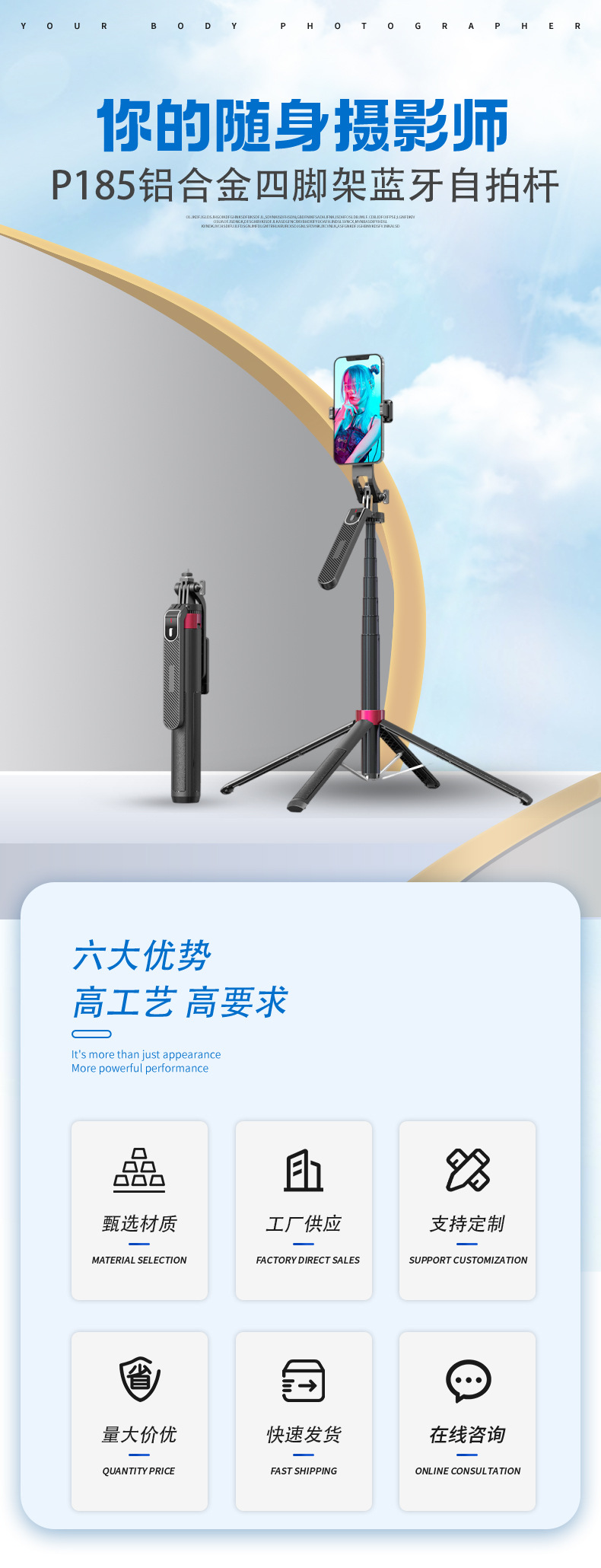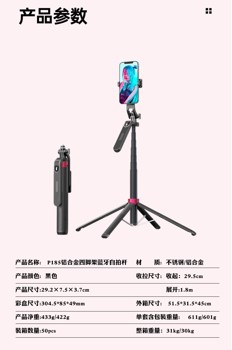 P185 알루미늄 합금 4피트 블루투스 셀카봉 휴대폰 라이브 방송 플로어 스탠드는 자유롭게 수축되어 휴대가 간편합니다.스토어 가기