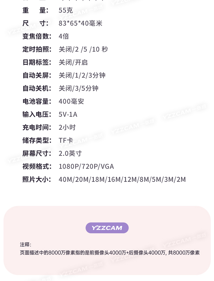 • ✲✲✱✱✲✲ 普清淡黄色(可录像+多种滤镜)-标配✲✲✱✱✲✲