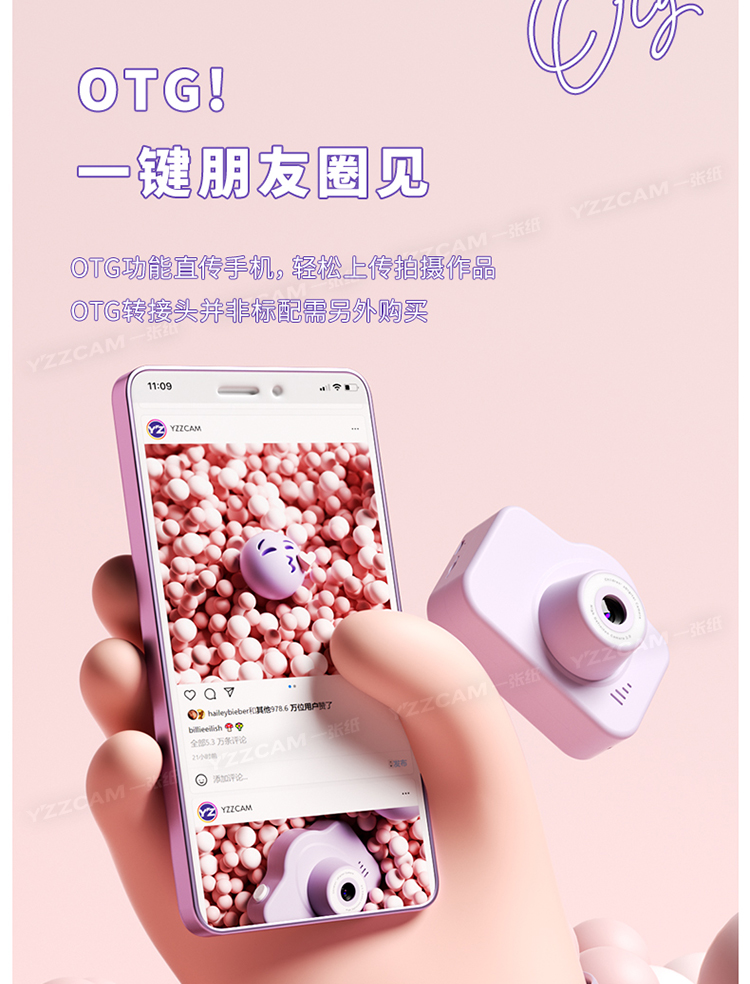 • ✲✲✱✱✲✲ 普清粉红色(可录像+多种滤镜)-标配✲✲✱✱✲✲