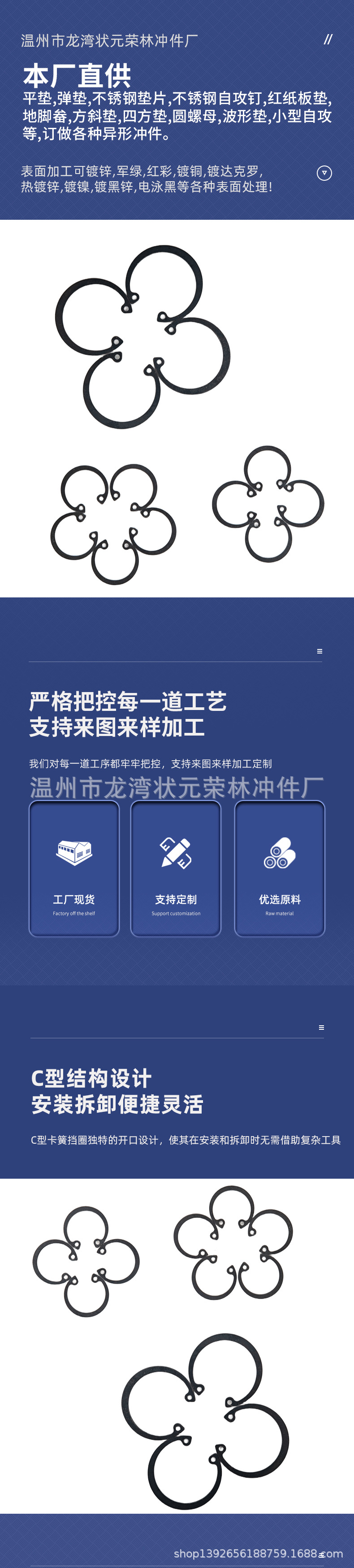 공장 가공 샤프트 구멍 오픈 서클 링 검정색 서클 링 M2-M15 스프링 클립 스테인레스 스틸 C 형 스프링 클립 도매스토어 가기