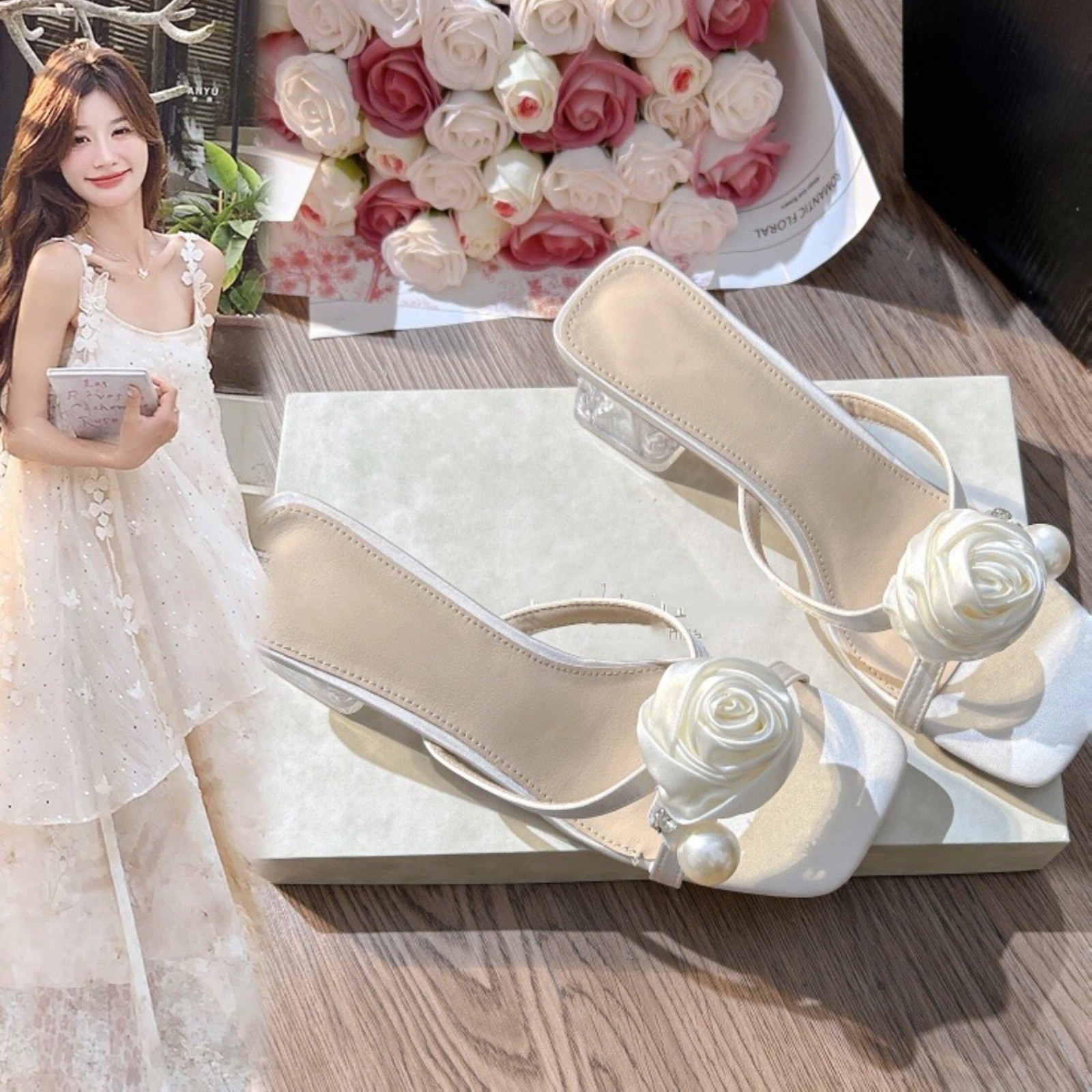 여름 아우터로 착용하기 좋은 여성용 아름다운 슬리퍼의 부드러운 가죽 버전, 스커트와 매치한 패셔너블한 새로운 중국 스타일의 중국풍 크리스탈 힐 샌들