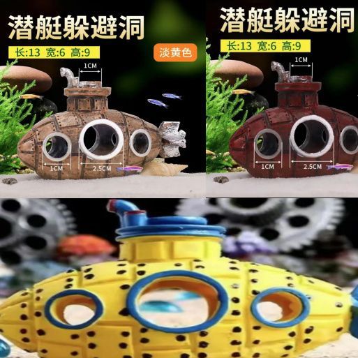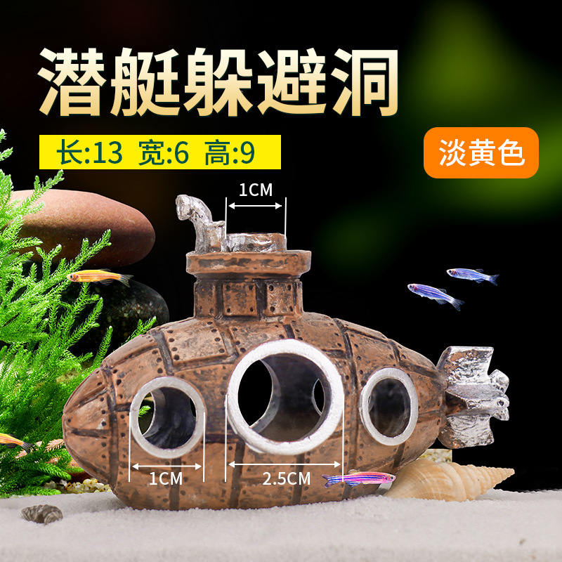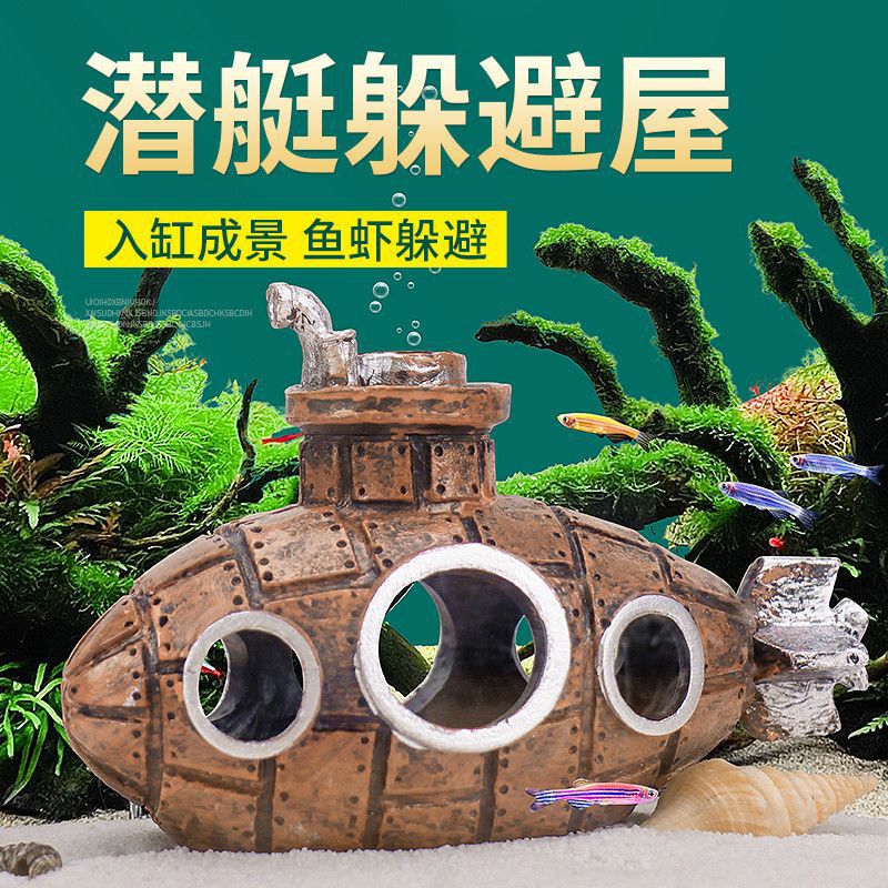 수조 조경 창의적인 장식품, 잠수함 장식품, 바닥에 침몰하는 복고풍 장식품, 등반 애완 동물 동굴, 작은 물고기 피난처스토어 가기
