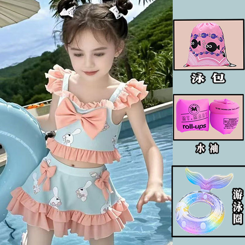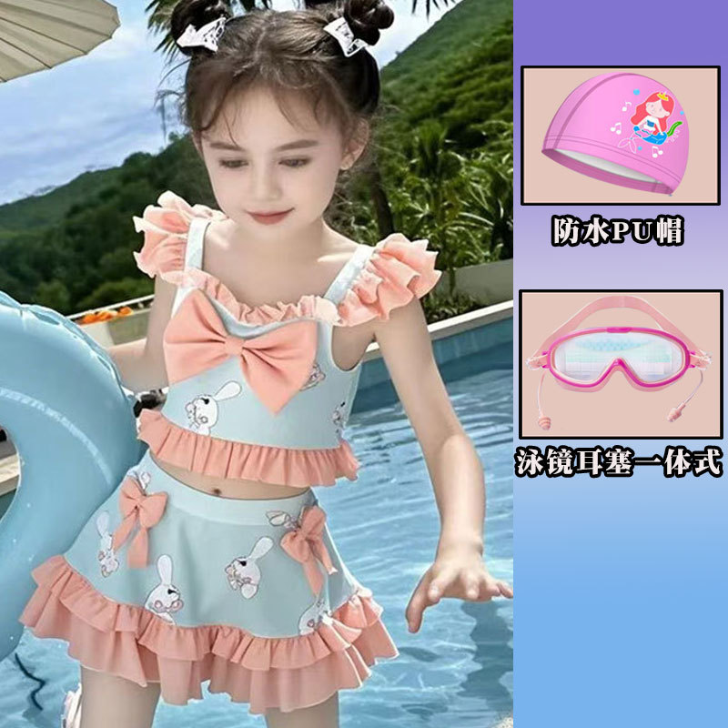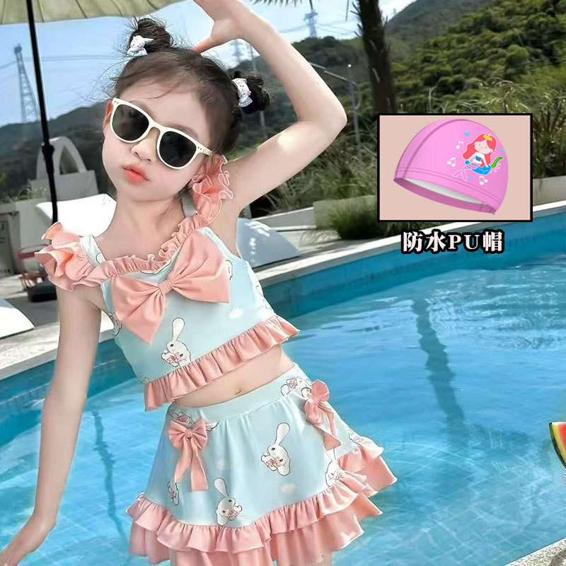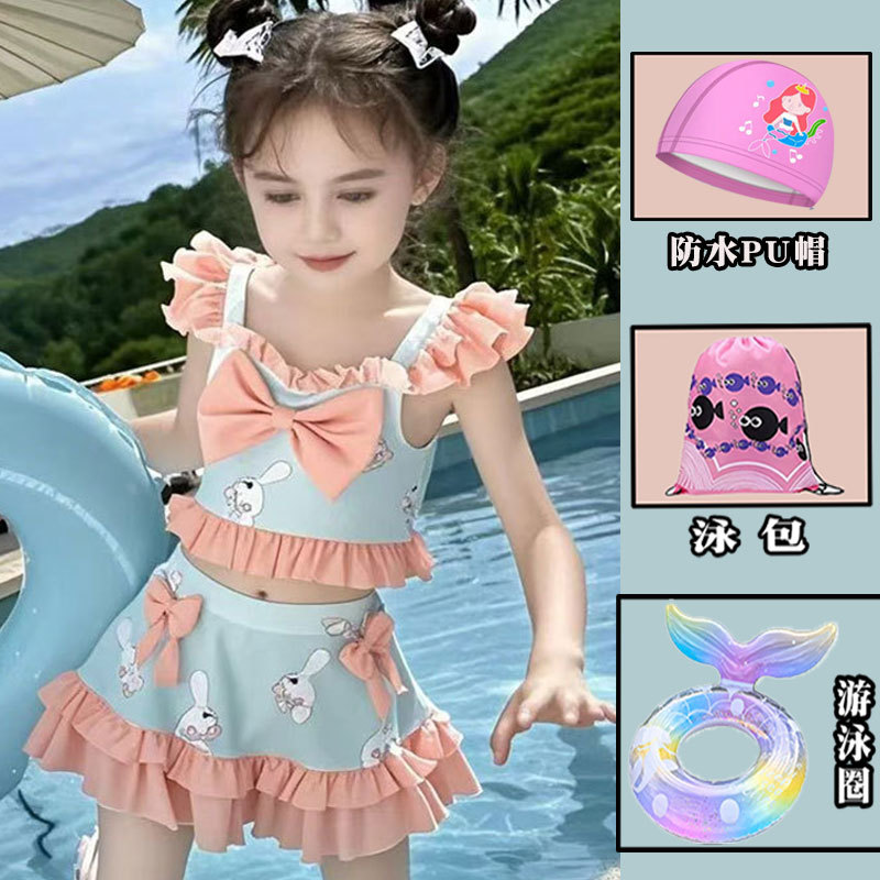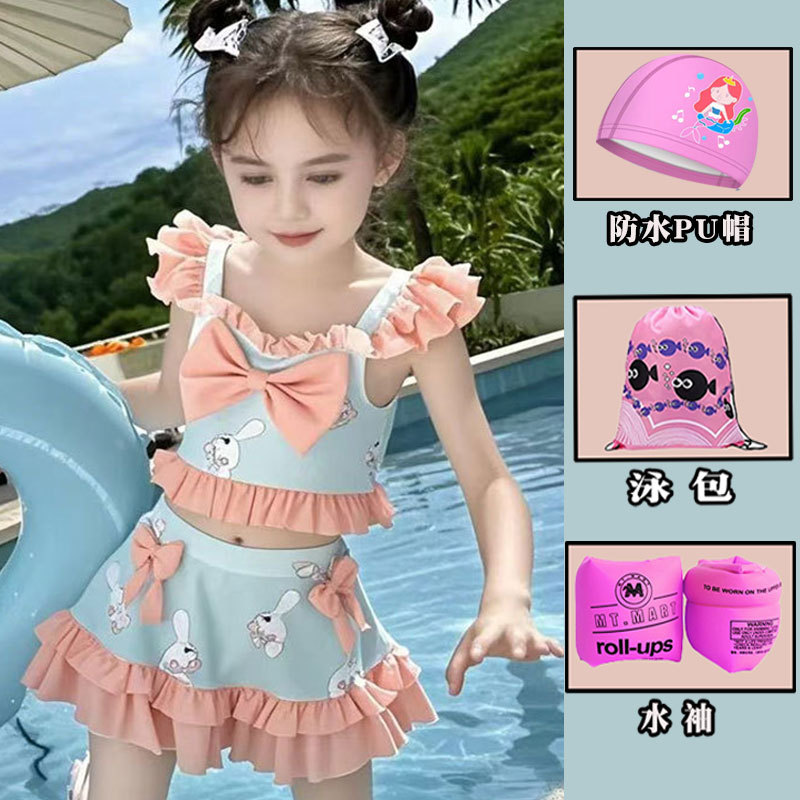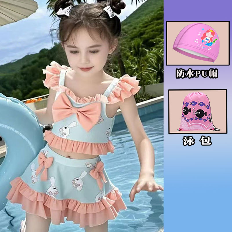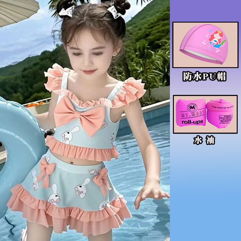 새로운 여름 어린이 귀여운 공주 스타일 스커트 수영복 소녀 온천 해변 통기성 속건성 스플릿 수영복