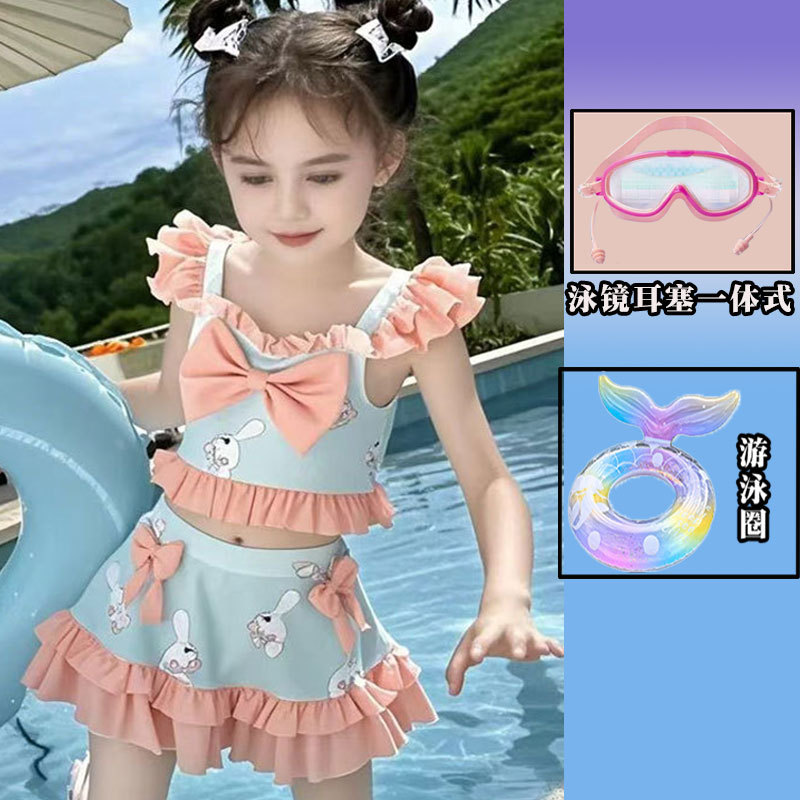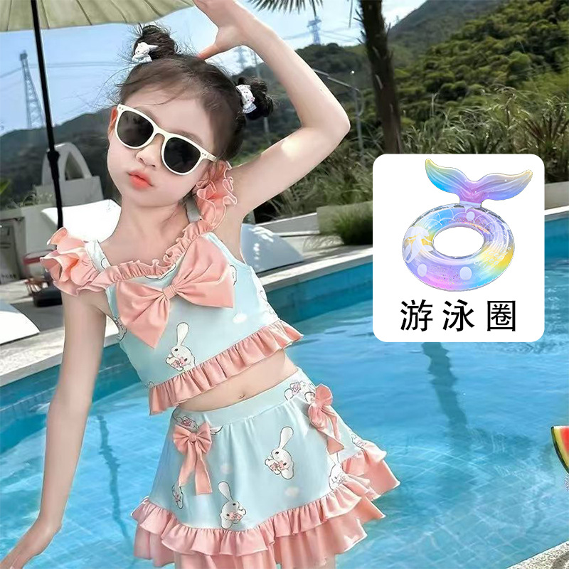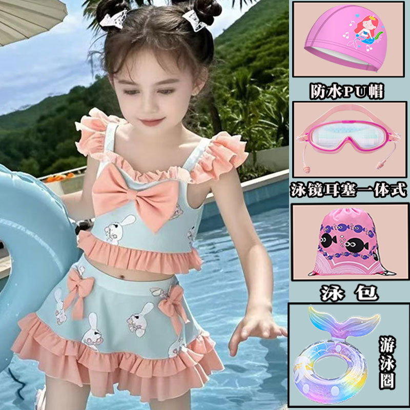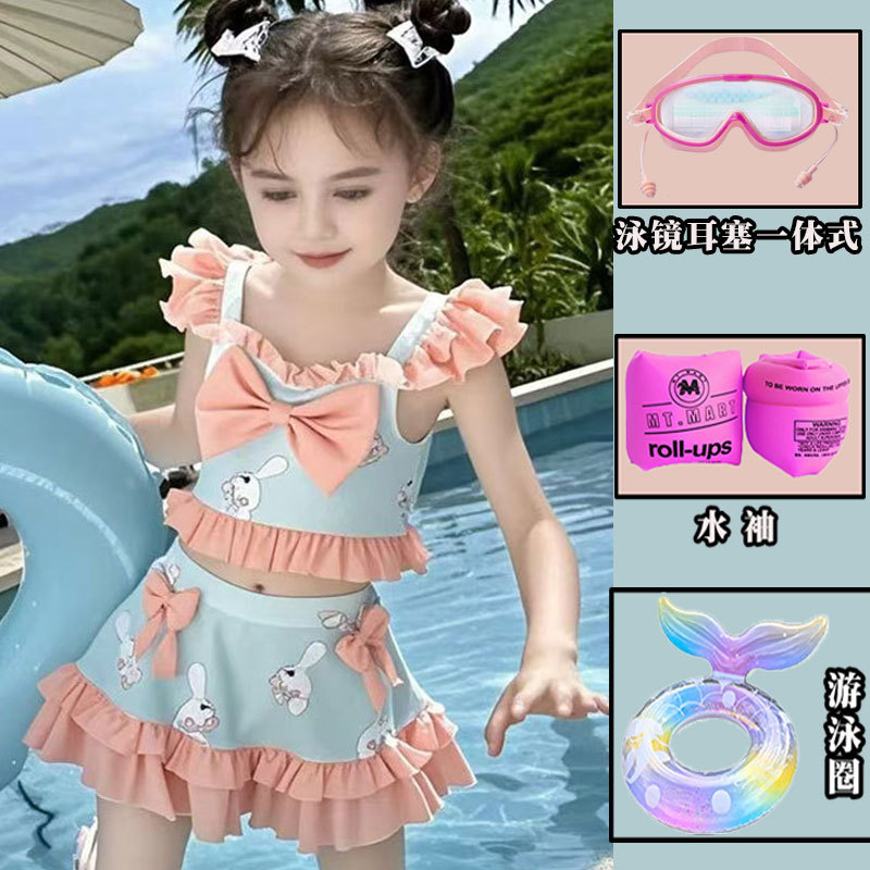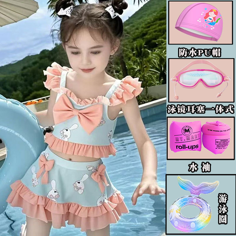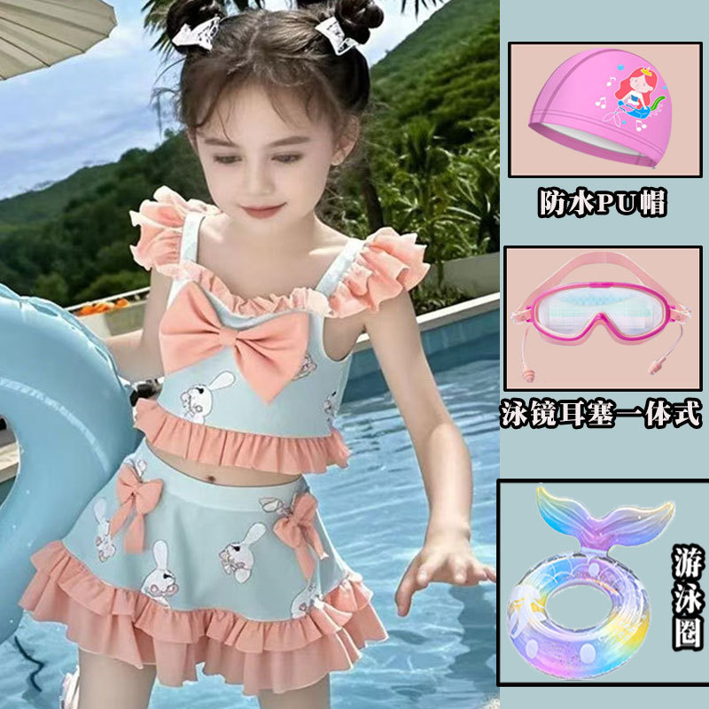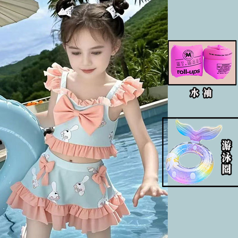새로운 여름 어린이 귀여운 공주 스타일 스커트 수영복 소녀 온천 해변 통기성 속건성 스플릿 수영복
