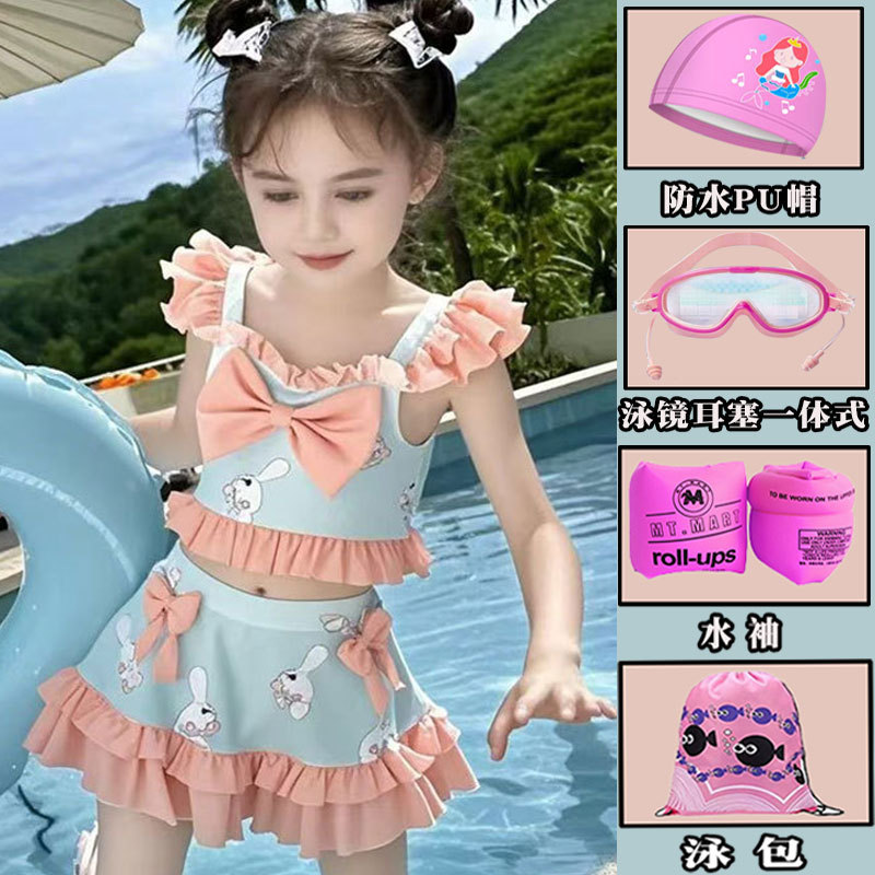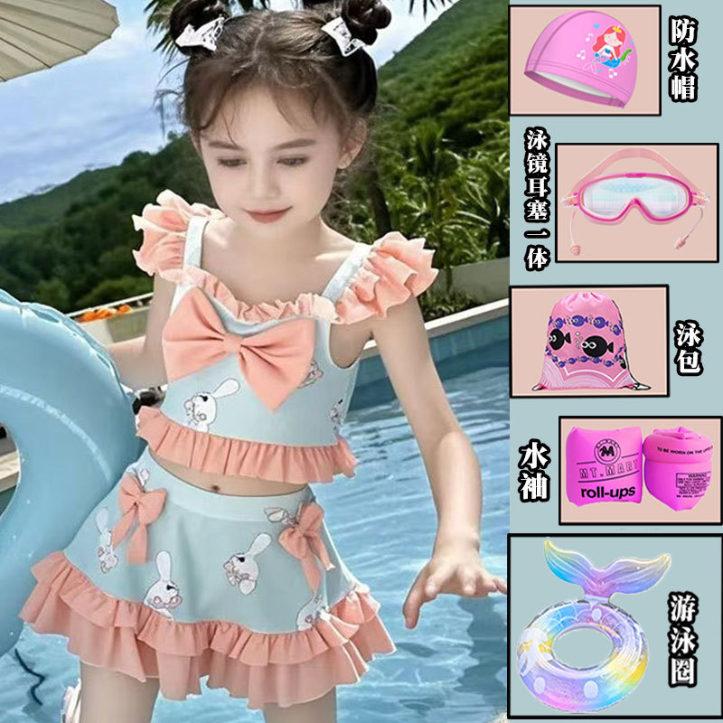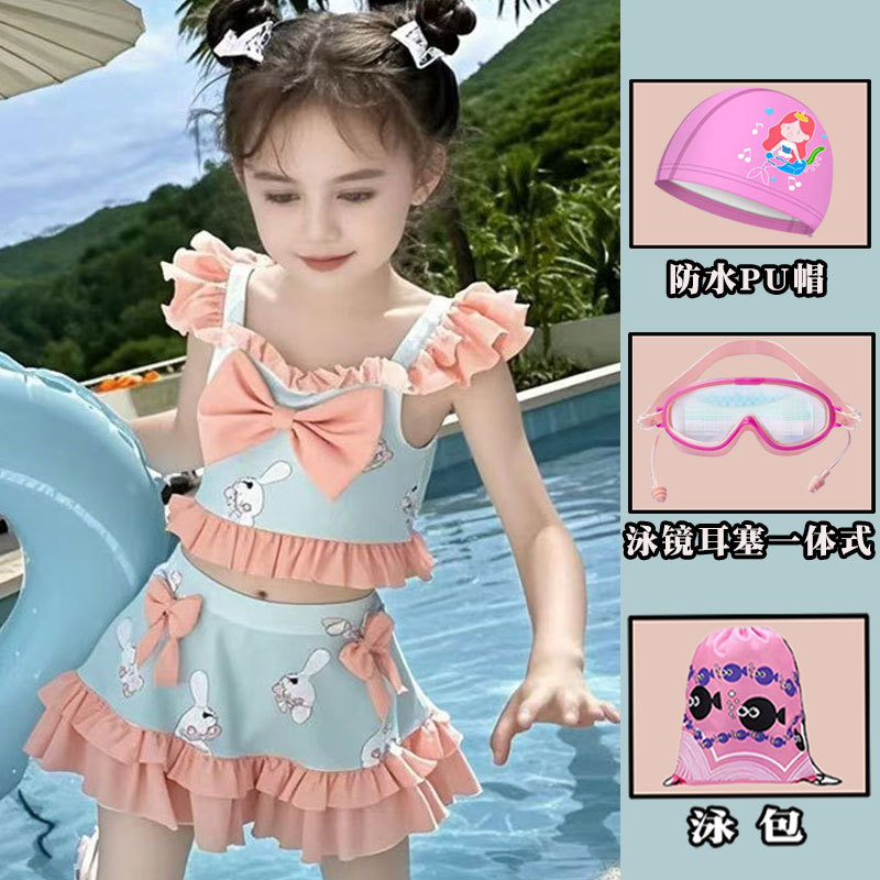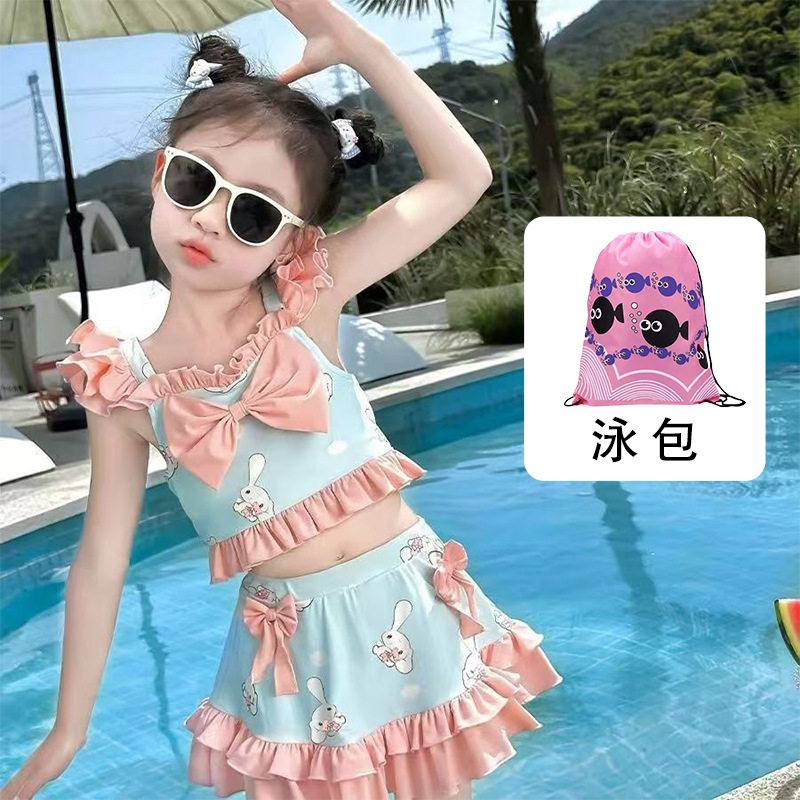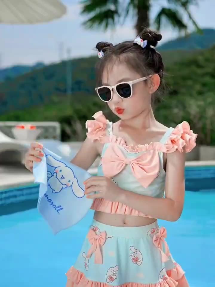 새로운 여름 어린이 귀여운 공주 스타일 스커트 수영복 소녀 온천 해변 통기성 속건성 스플릿 수영복스토어 가기