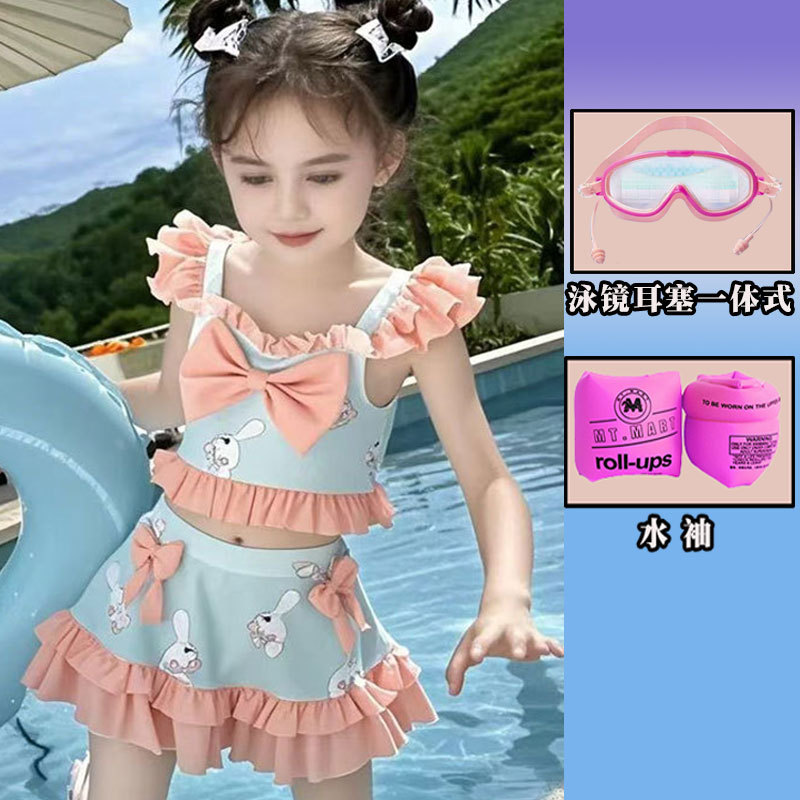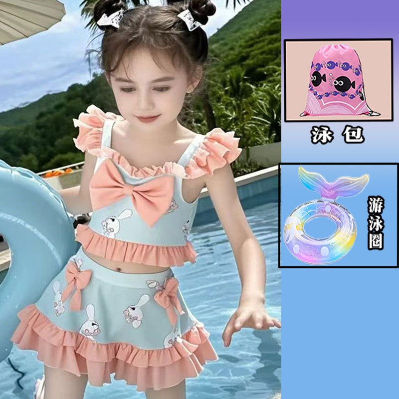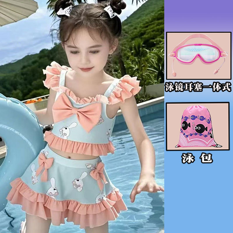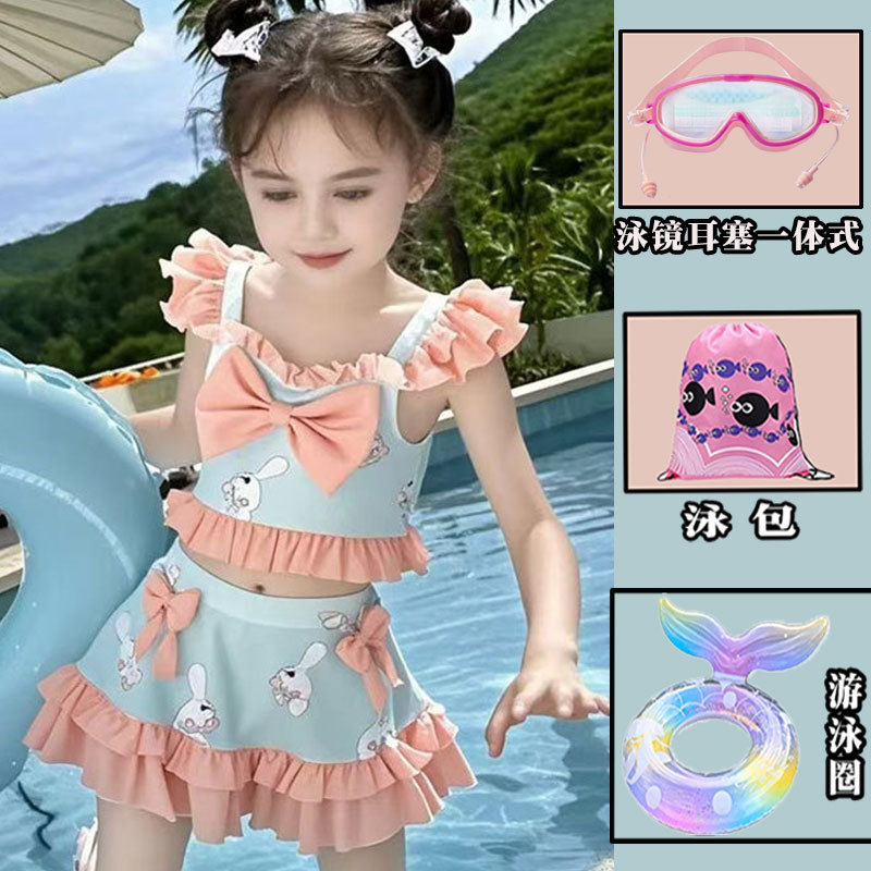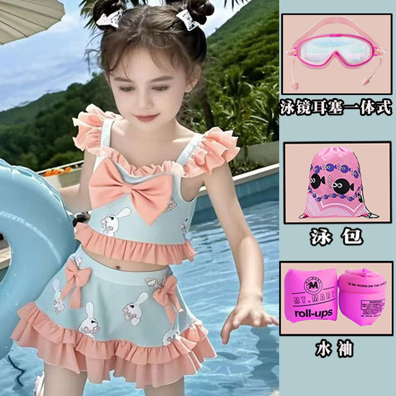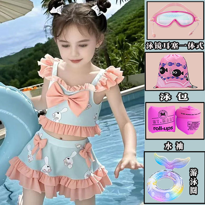 새로운 여름 어린이 귀여운 공주 스타일 스커트 수영복 소녀 온천 해변 통기성 속건성 스플릿 수영복스토어 가기