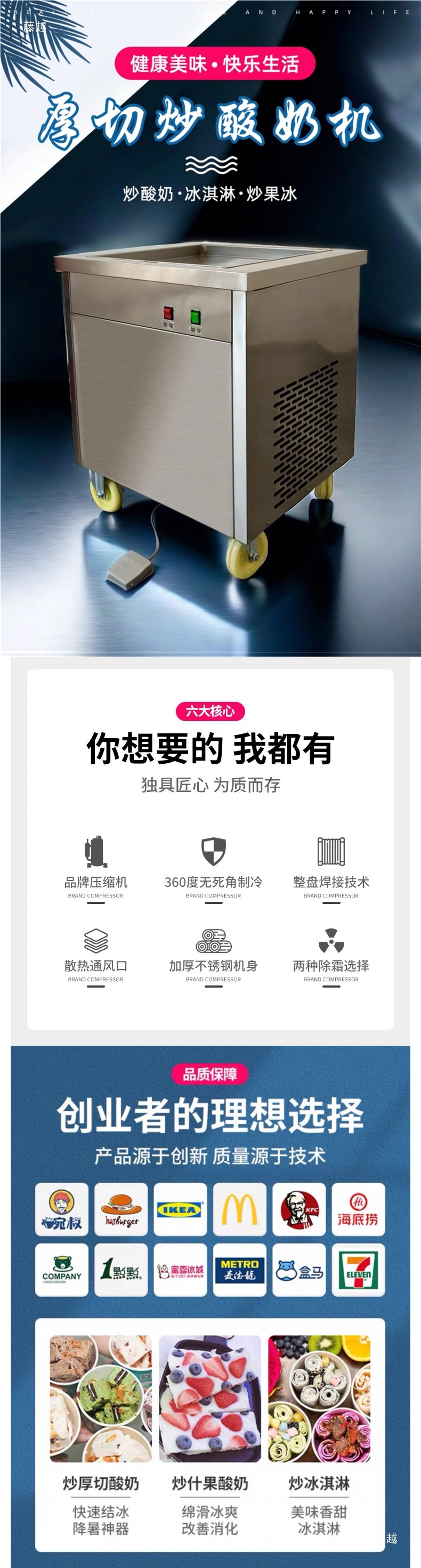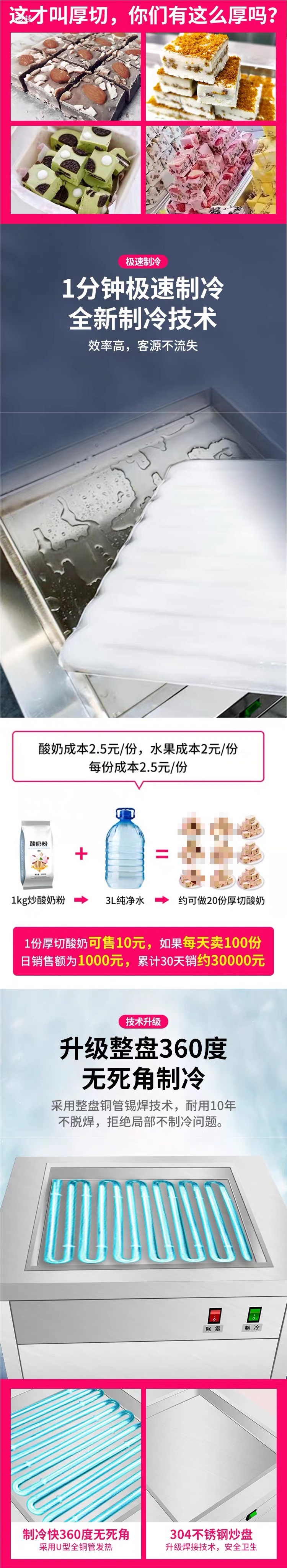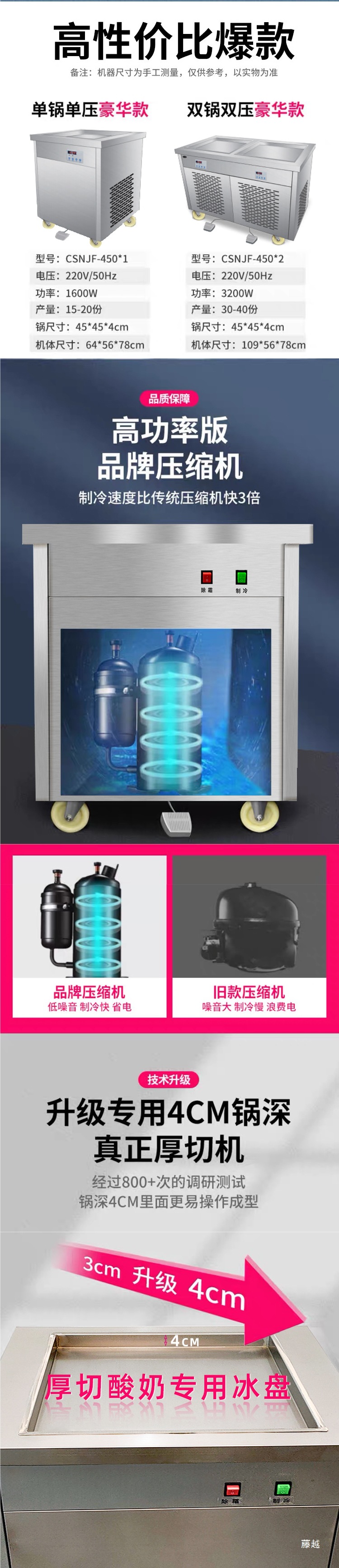 두껍게 썬 요거트 기계, 상업용 플러그인 모델, 싱글 및 더블 팬 프라이드 아이스크림 롤 스톨, 샌드 아이스 기계, 완전 자동 아이스 프라이 기계