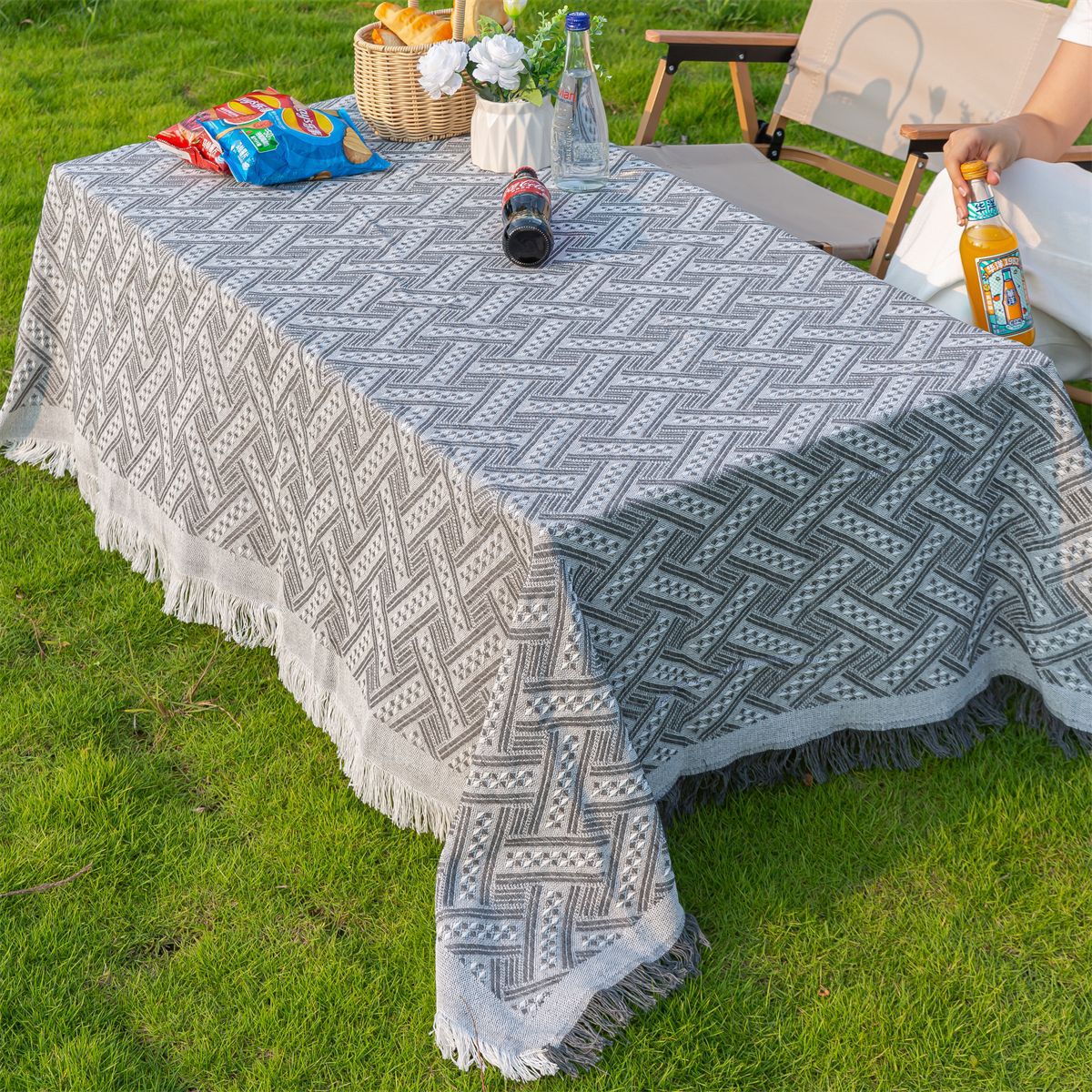 • 피크닉매트 - 화이트 그레이 T그리드(고급 면사)