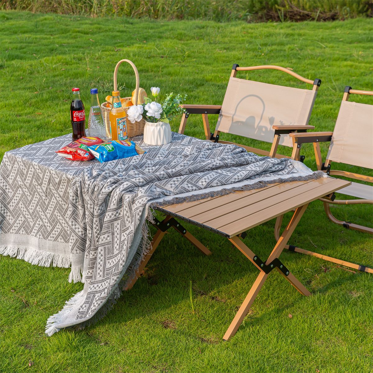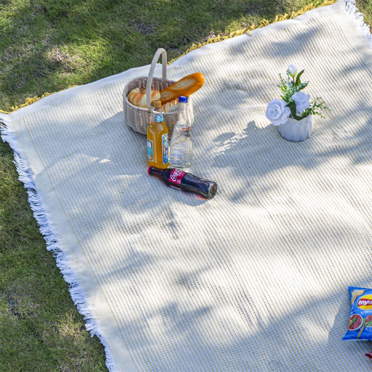 [해외배송전용] T자형 피크닉매트, 방습매트, 피크닉천, 아웃도어 캠핑담요, 화이트담요, 비치매트
