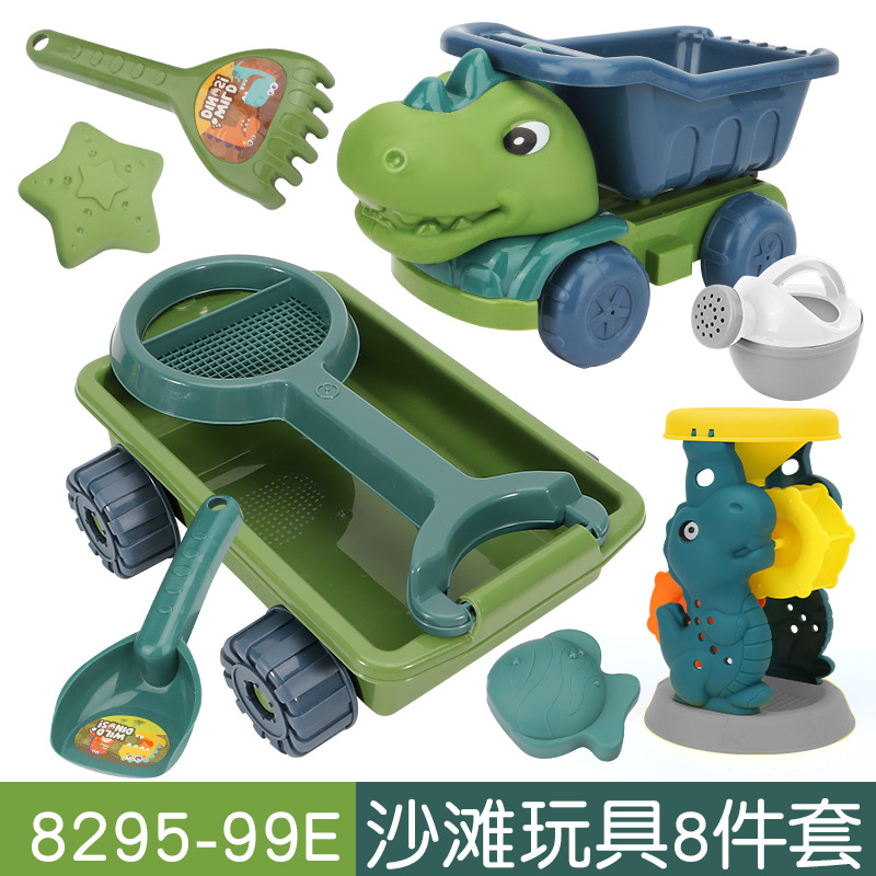 厂家儿童恐龙工程车铲子沙滩玩具套装宝宝户外戏水挖沙沙漏工具