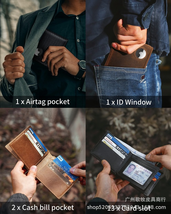 Amazon Napa 남성용 짧은 PU 초박형 지갑 유럽과 미국의 다기능 카드 슬롯 에어태그 트래커 지갑스토어 가기