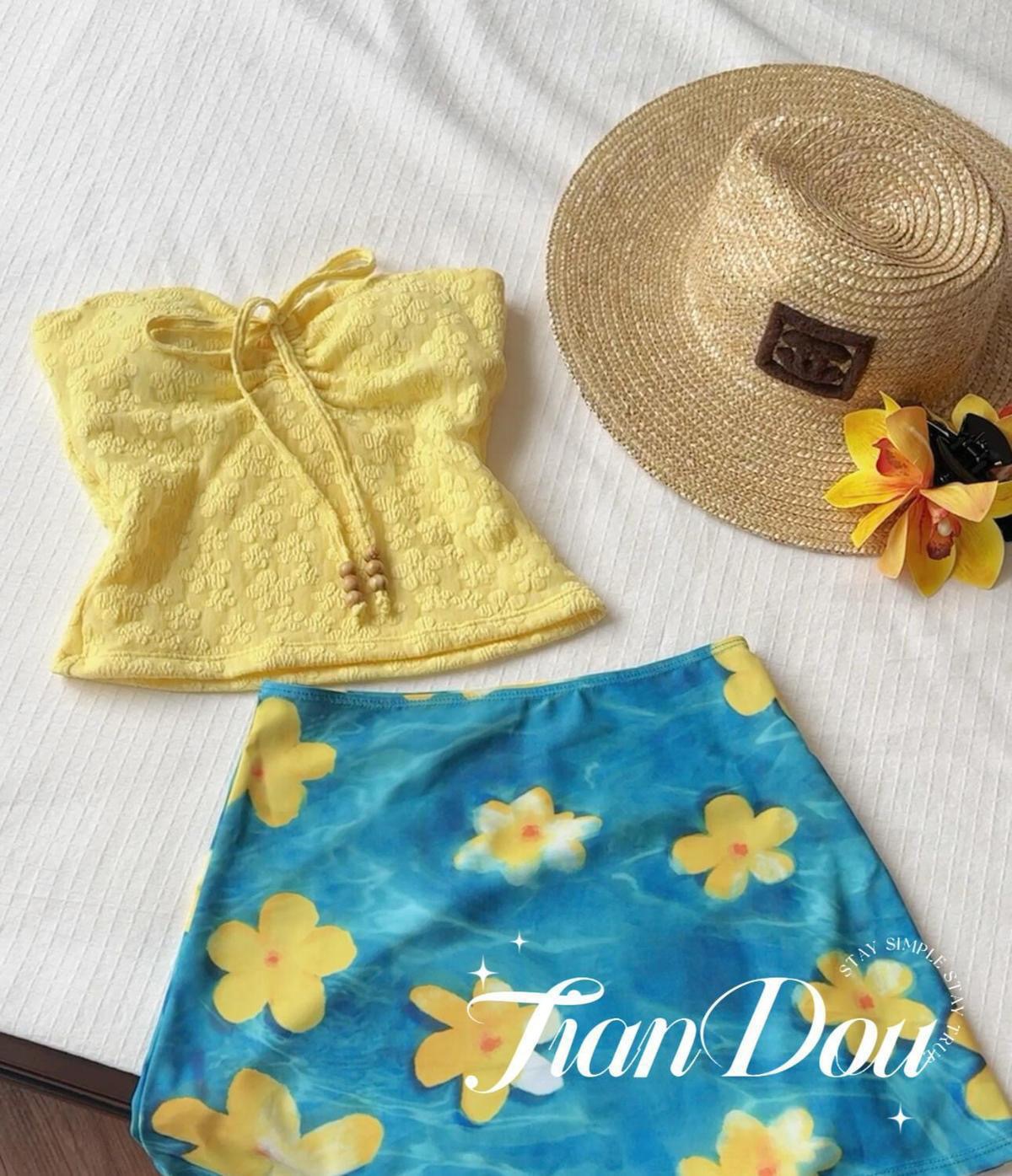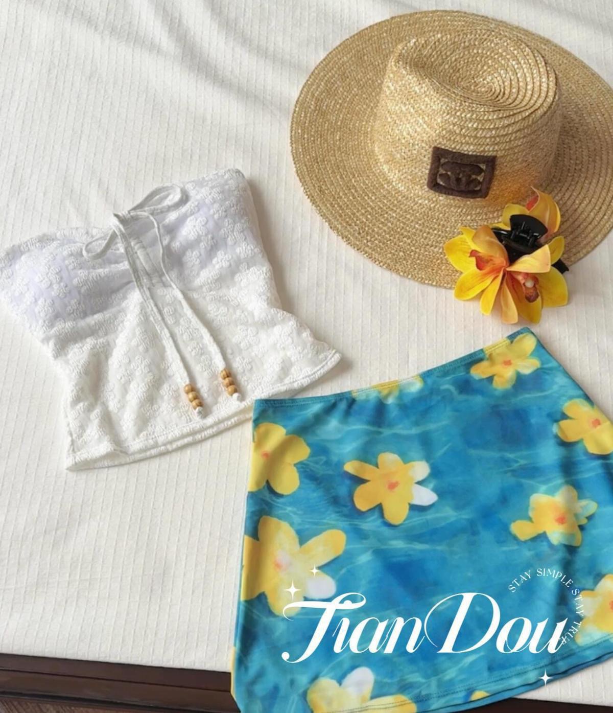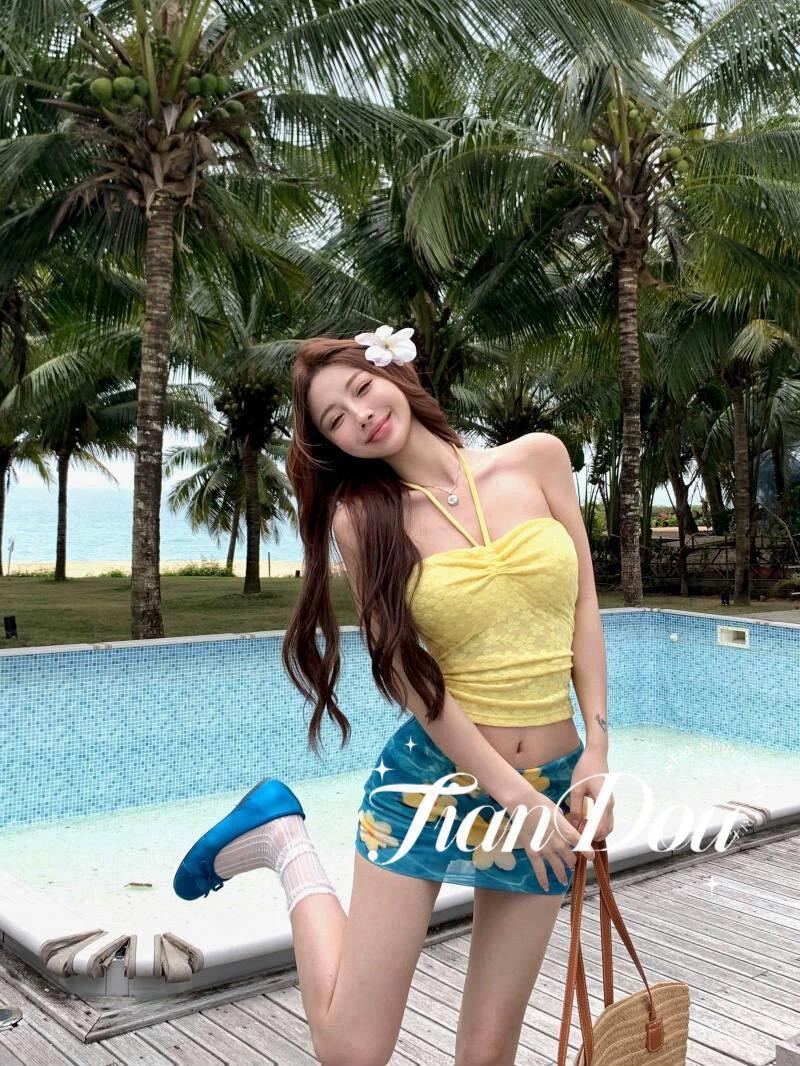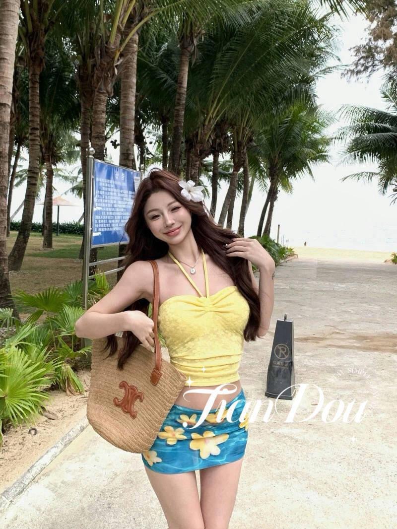 [여름 스타일] 인스 스타일 아일랜드 비치 휴가 퓨어 러스티 스타일 비키니 스플릿 스커트 3피스 온천 세트