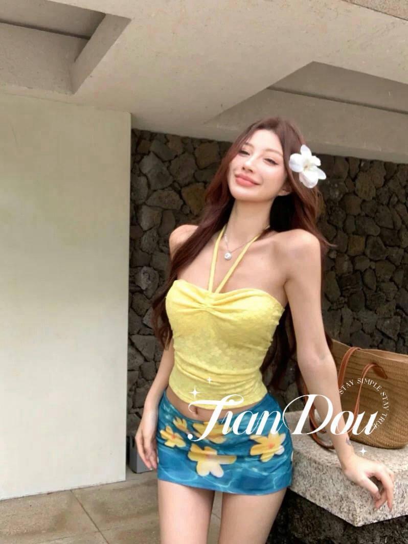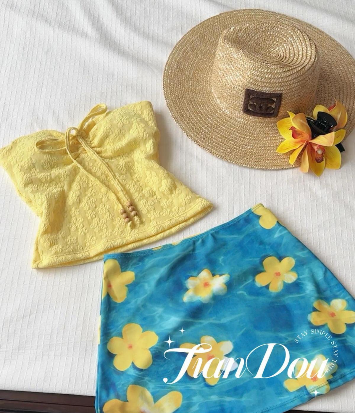 [여름 스타일] 인스 스타일 아일랜드 비치 휴가 퓨어 러스티 스타일 비키니 스플릿 스커트 3피스 온천 세트스토어 가기