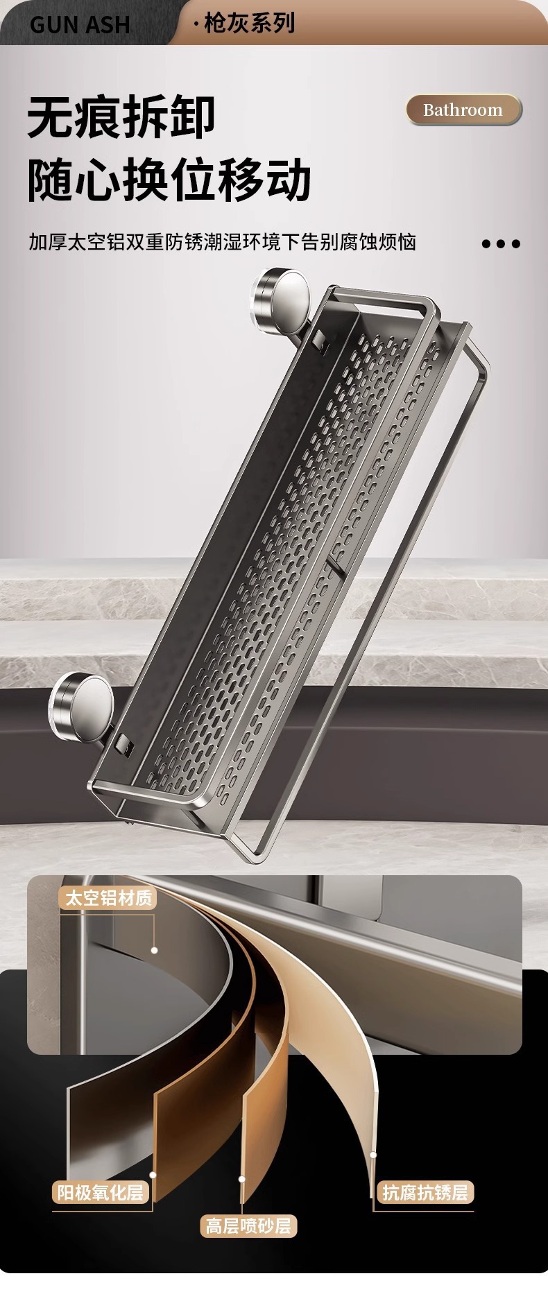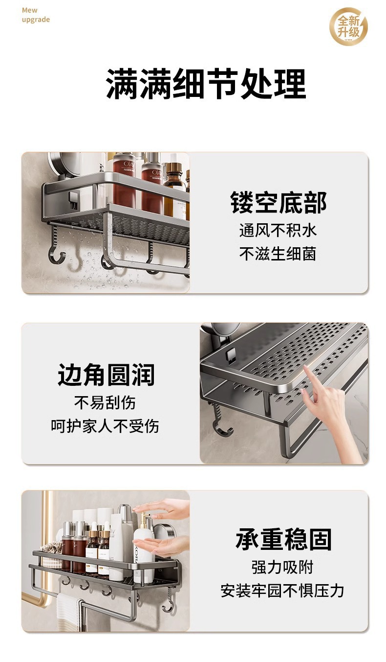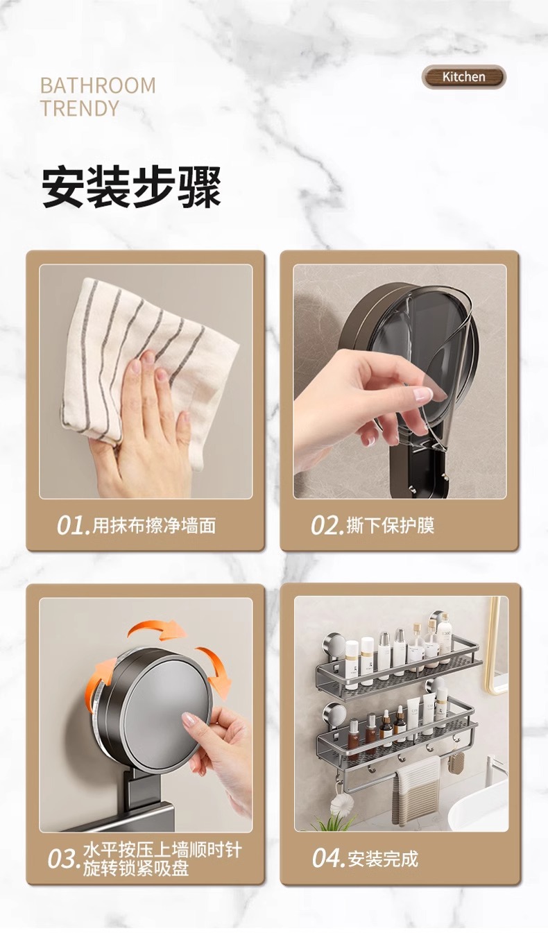 가공 및 맞춤형 욕실 흡입 컵 보관 랙 욕실 펀치없는 벽걸이 형 다기능 보관 랙