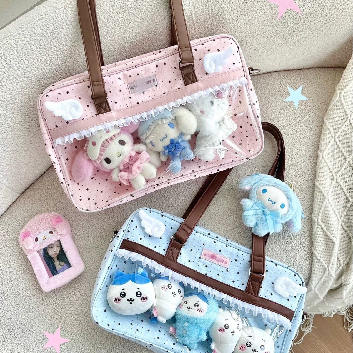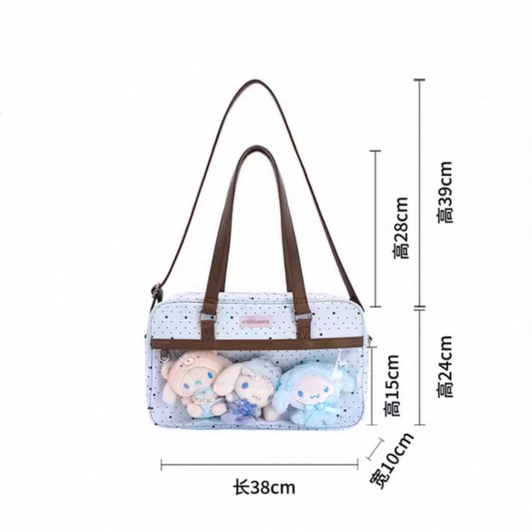 레이스 리본, 귀여운 통증 가방, 스낵 용량, 투명 숄더 크로스백, 여성용 2차원 대용량스토어 가기