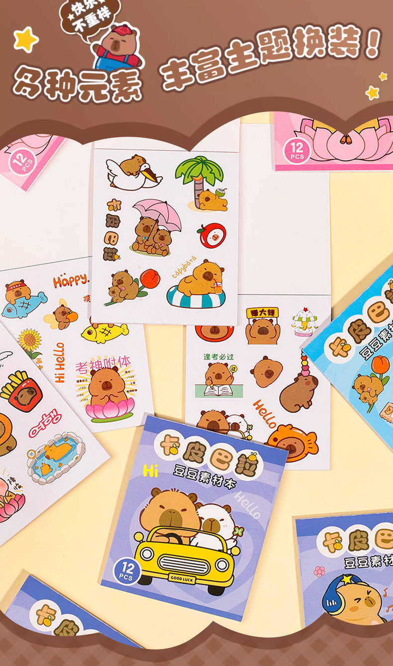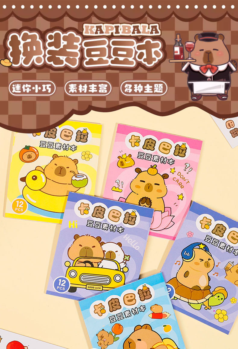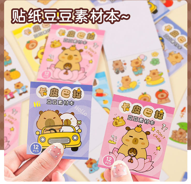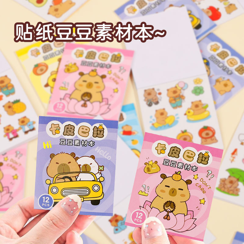 만화 카피바라 리틀 콩 스티커, 귀여운 소녀 하트 스티커, 핸드북 소재 스티커, 장식 및 감압스토어 가기