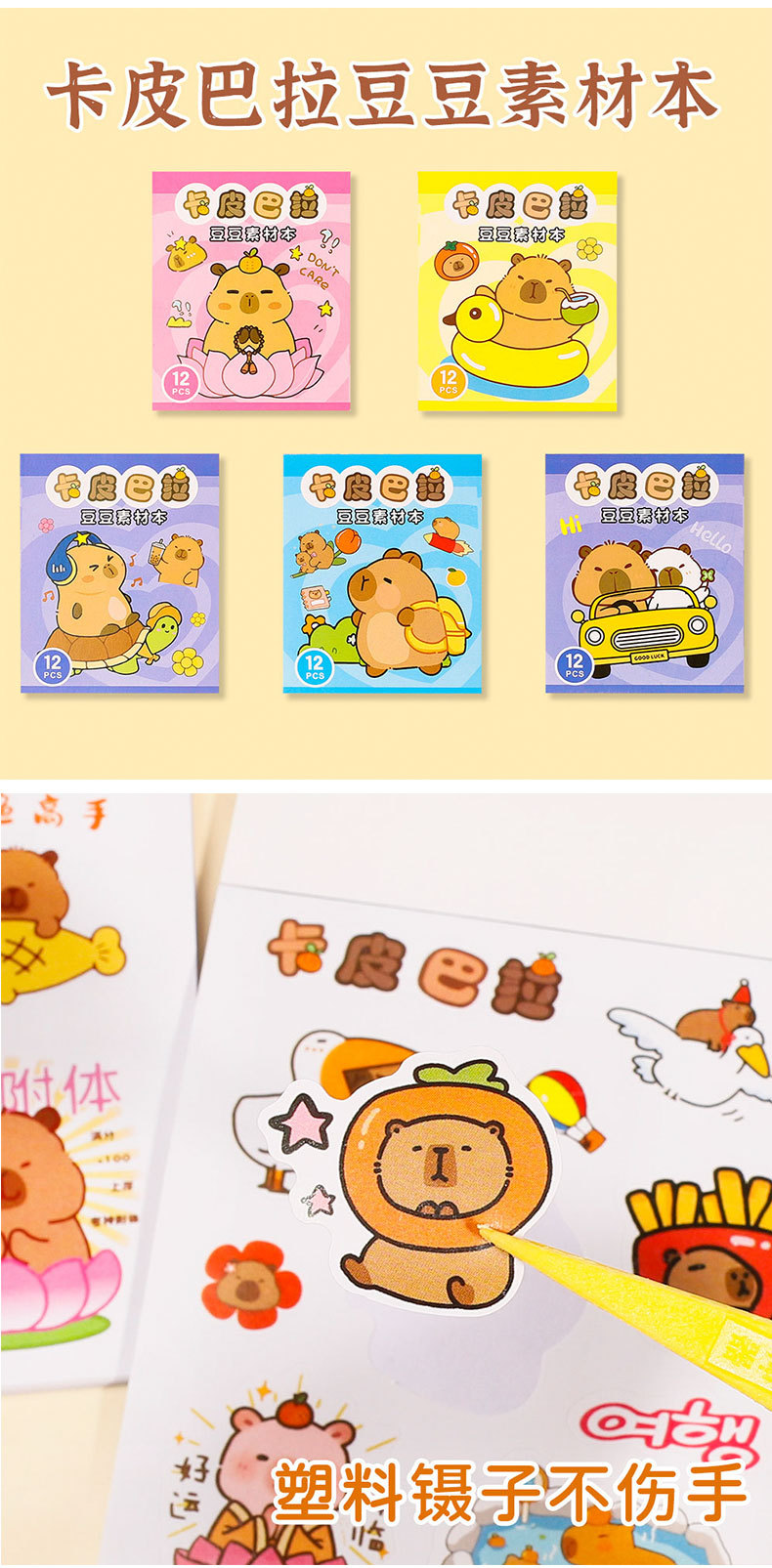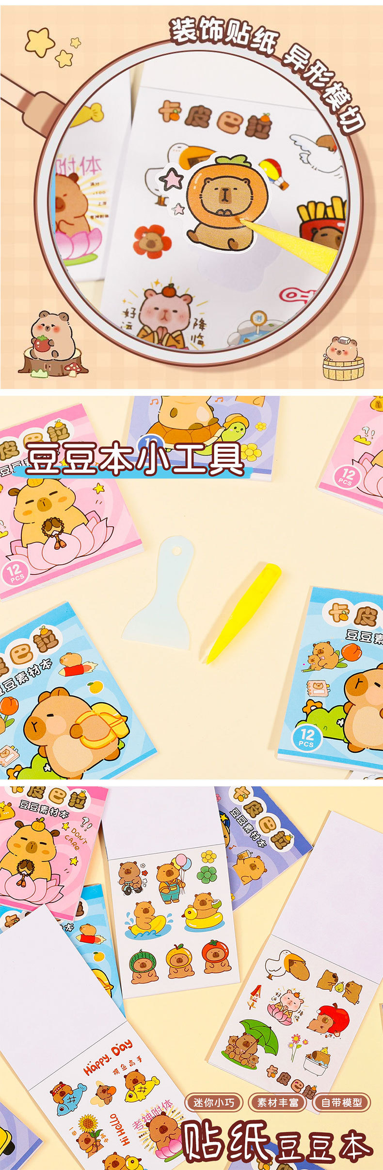 만화 카피바라 리틀 콩 스티커, 귀여운 소녀 하트 스티커, 핸드북 소재 스티커, 장식 및 감압