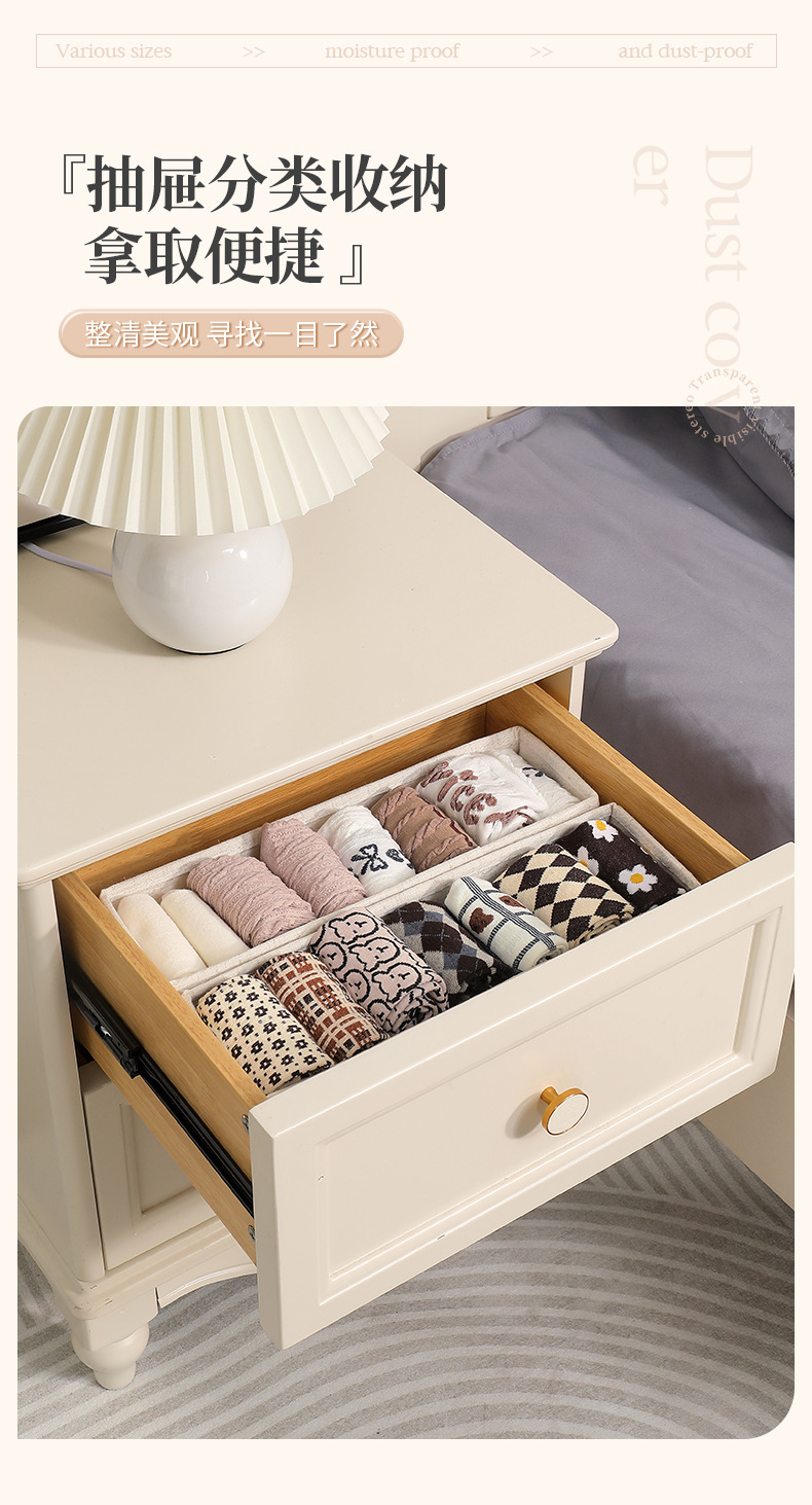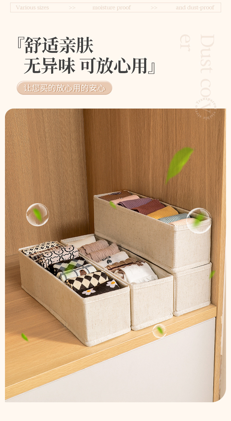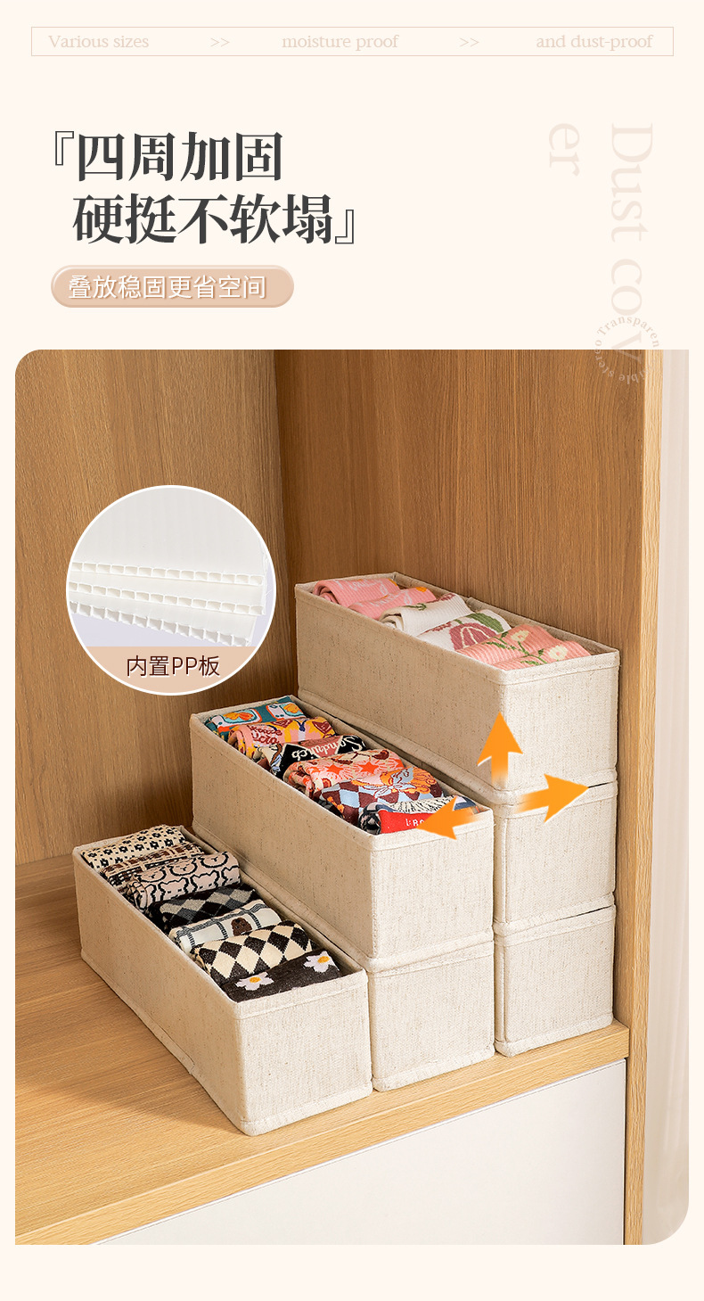 천산 면과 린넨 양말 보관함은 PP 보드가 포함되어 있으며, 세탁 가능하고 접을 수 있는 정리함, 속옷 보관용품