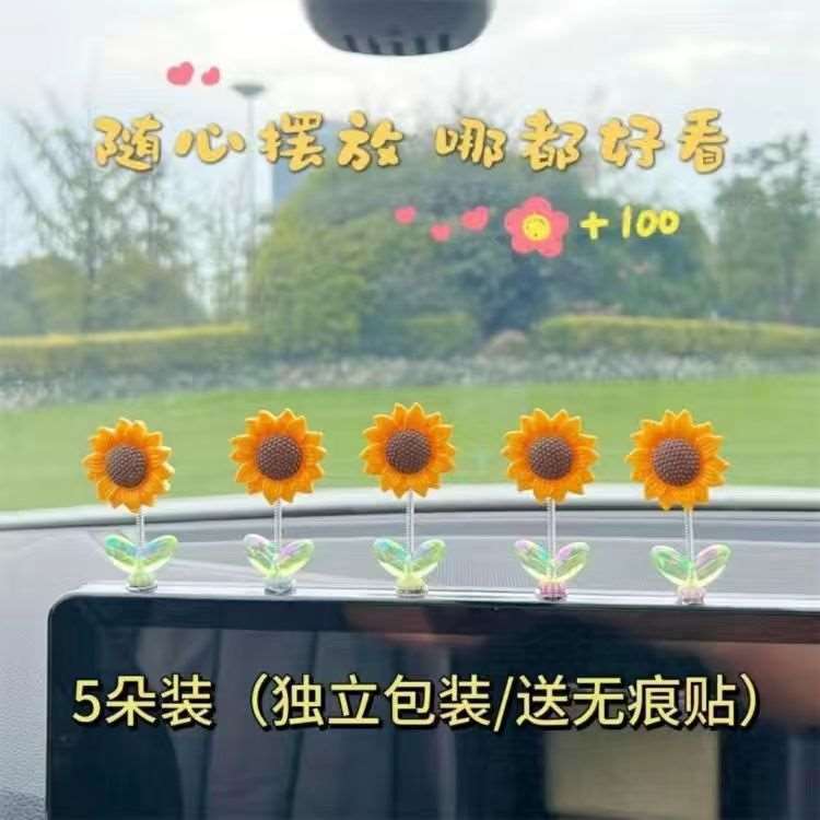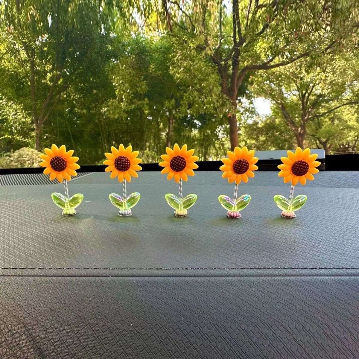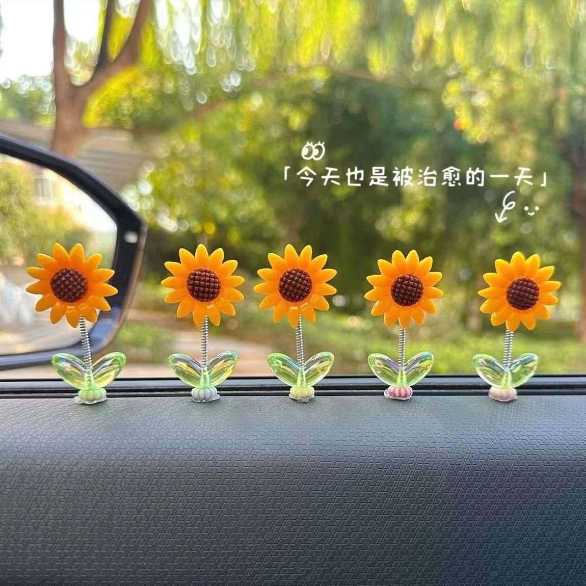 귀여운 흔들리는 해바라기 자동차 흔들리는 장식품 치유 신선한 꽃 자동차 센터 콘솔 백미러 장식품스토어 가기