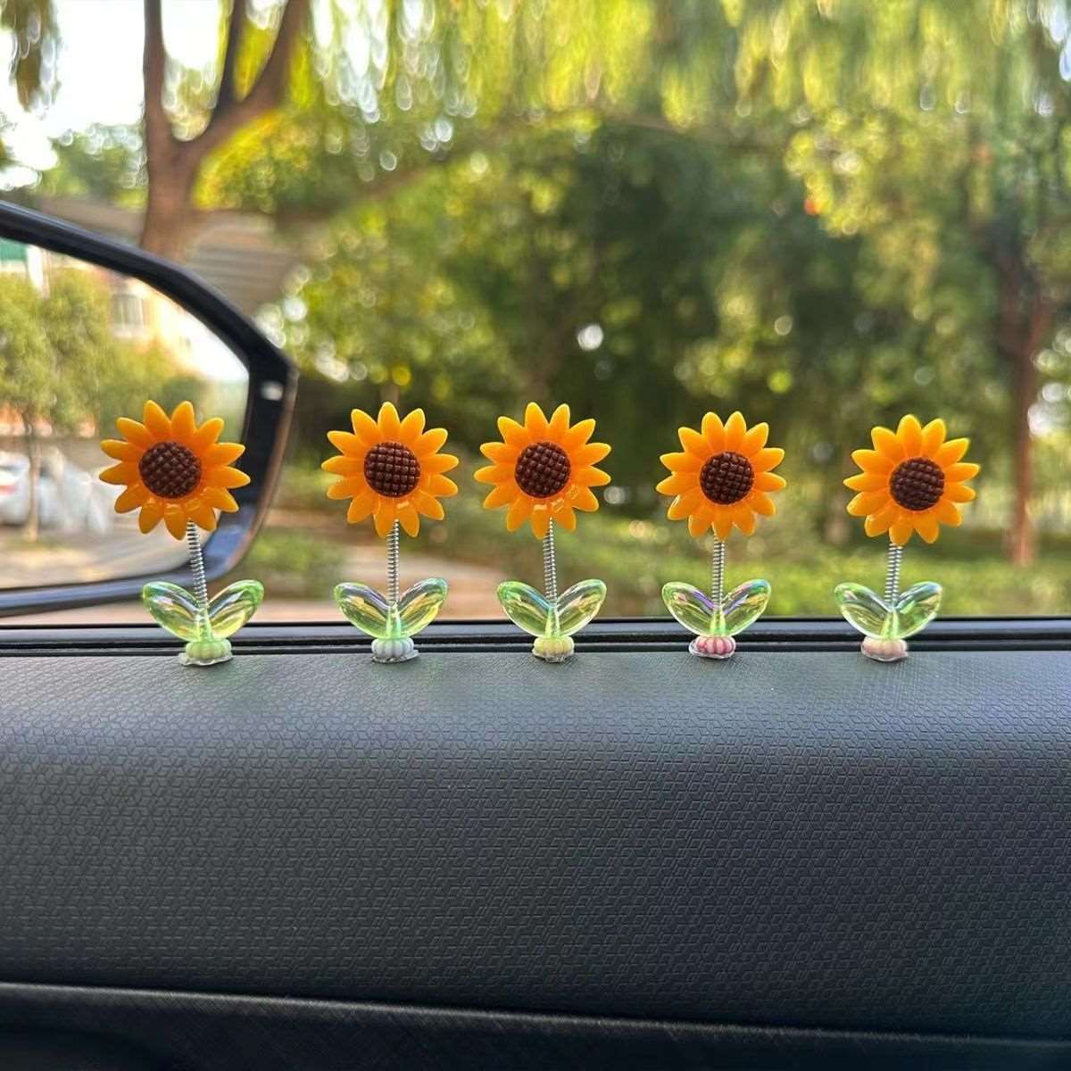 귀여운 흔들리는 해바라기 자동차 흔들리는 장식품 치유 신선한 꽃 자동차 센터 콘솔 백미러 장식품