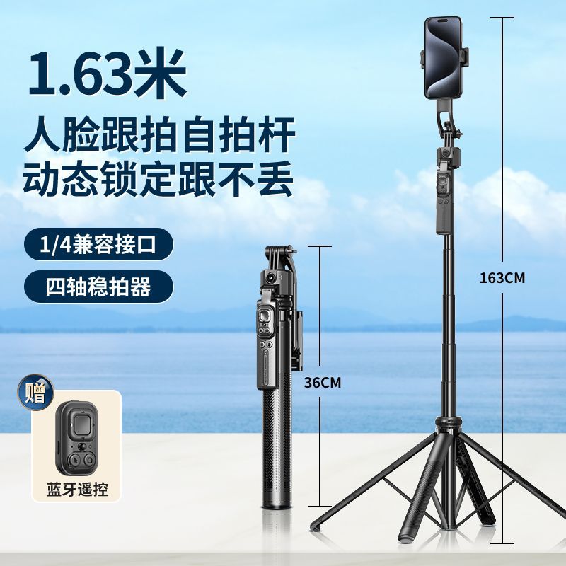 • 【C17- 1.63m 360】°지능형 추적 + 알루미늄 합금 폴 + 블루투스 리모콘 + 흔들림 방지 핸들 + 용골 4각대