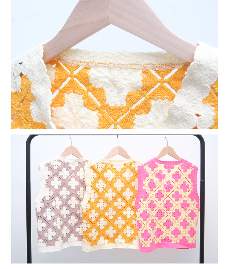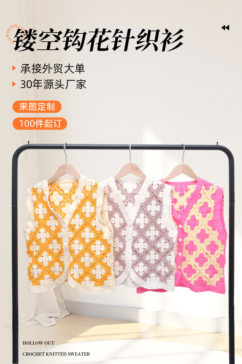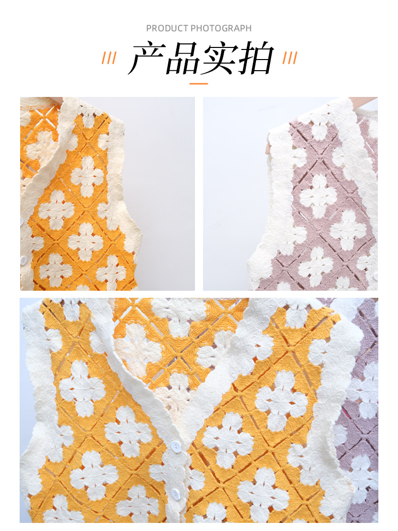 속이 빈 꽃 자수 니트 크로 셰 뜨개질 민소매 조끼 봄, 가을, 겨울 여성 복고풍 민족 디자인 짧은 조끼스토어 가기