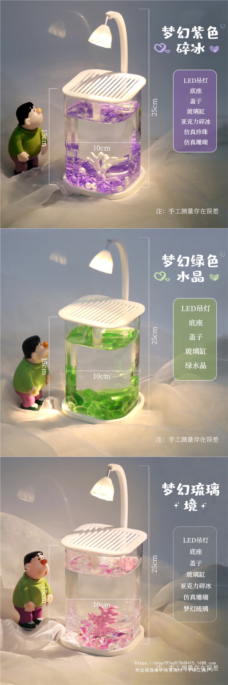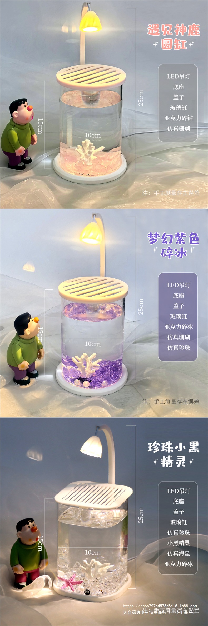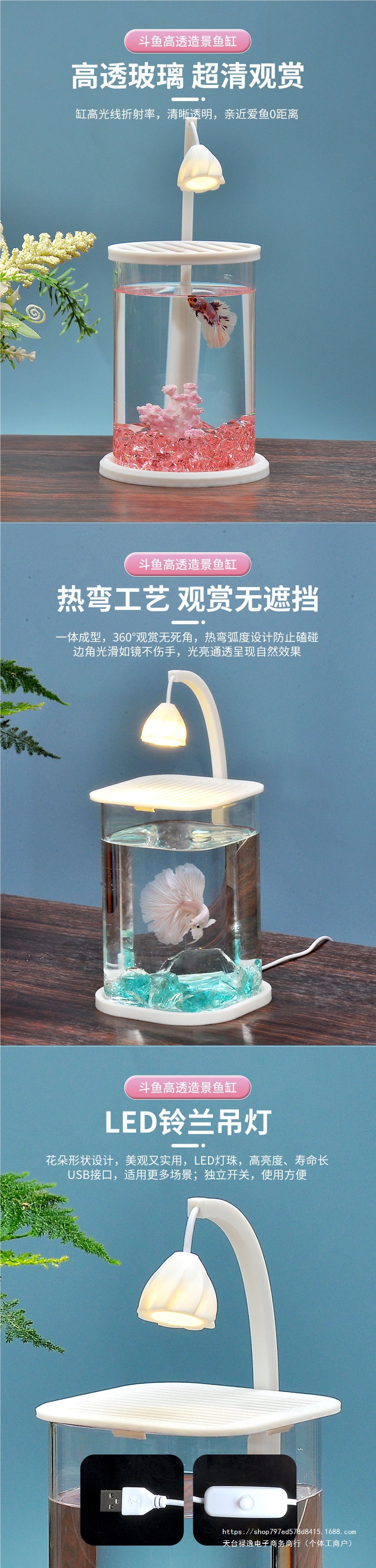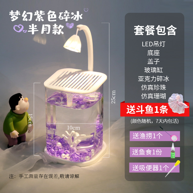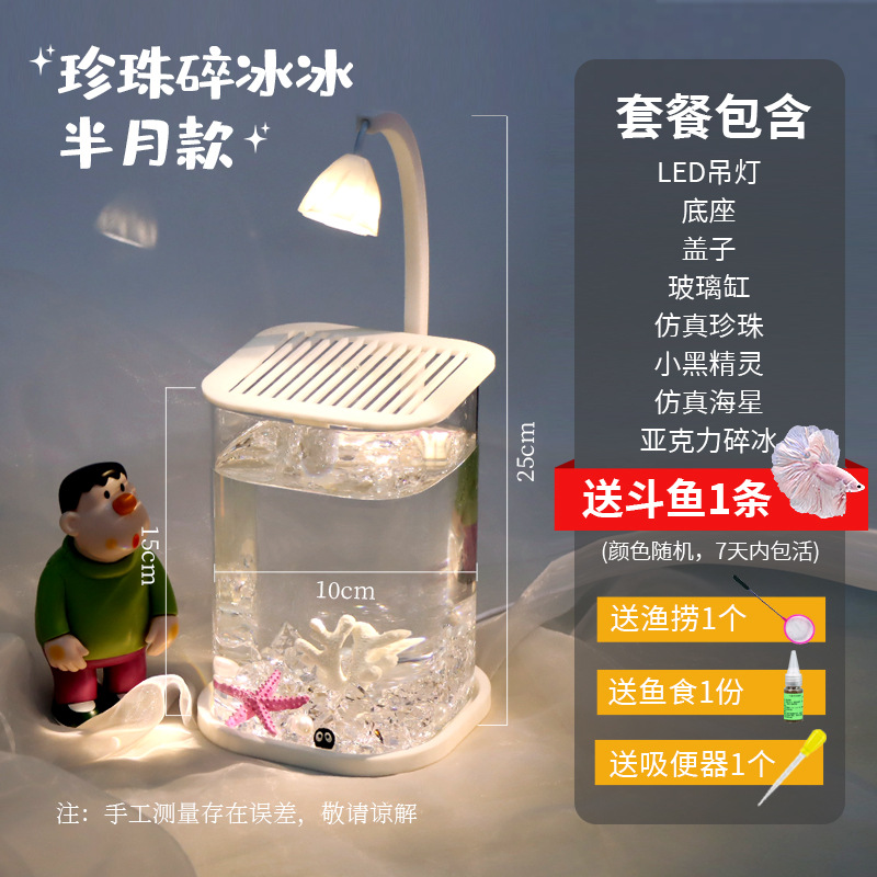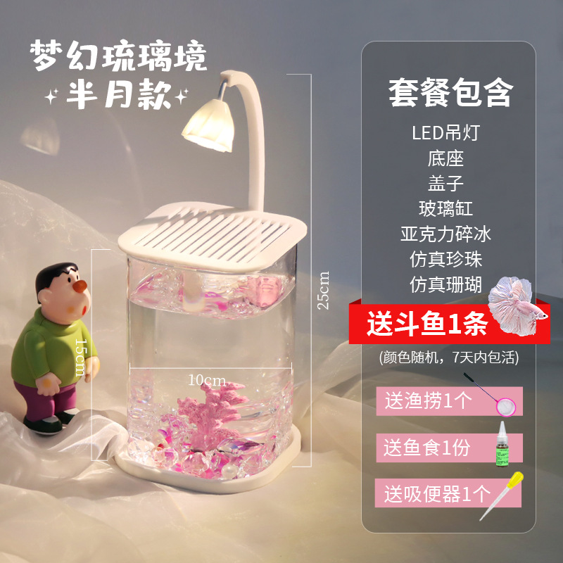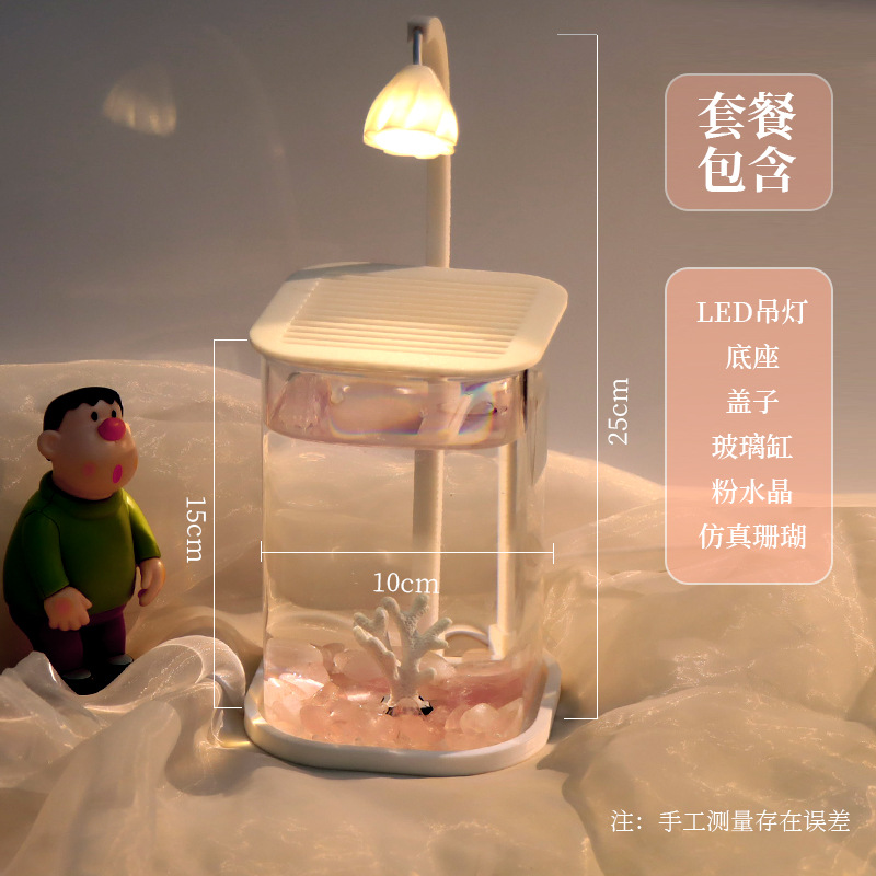 가정 거실 느낌을 위한 베이비피쉬 수조, 소형 게으른 인공 조경 유리 수조, 소녀 하트 데스크탑 고가치 장식품스토어 가기