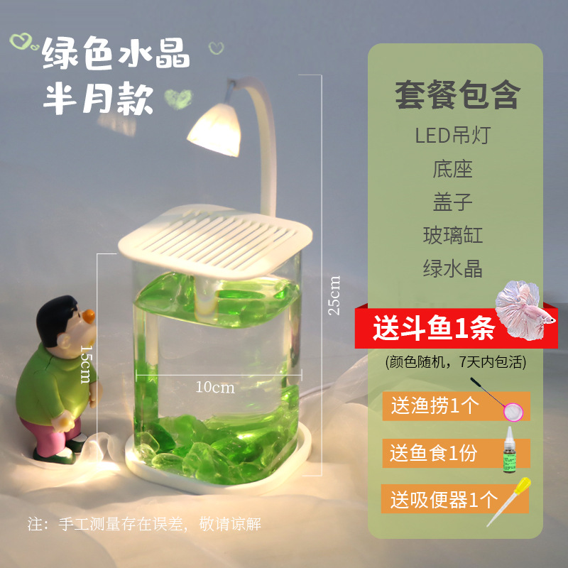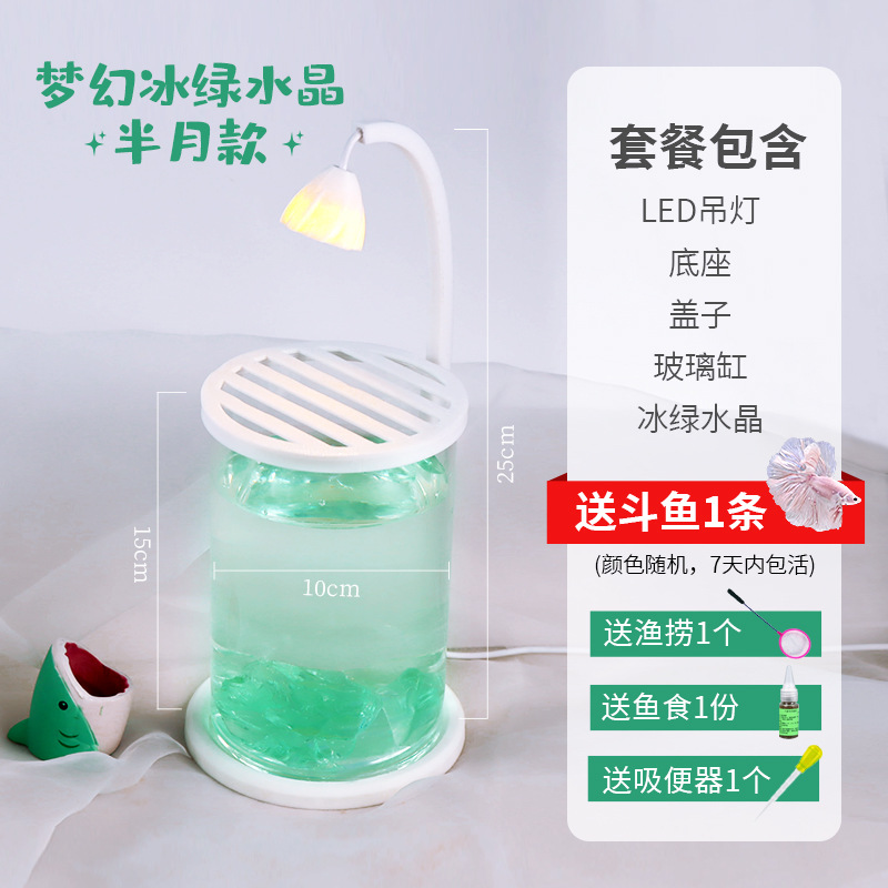 • 아이스 그린 크리스탈 원형 실린더 + 반달 수컷 물고기