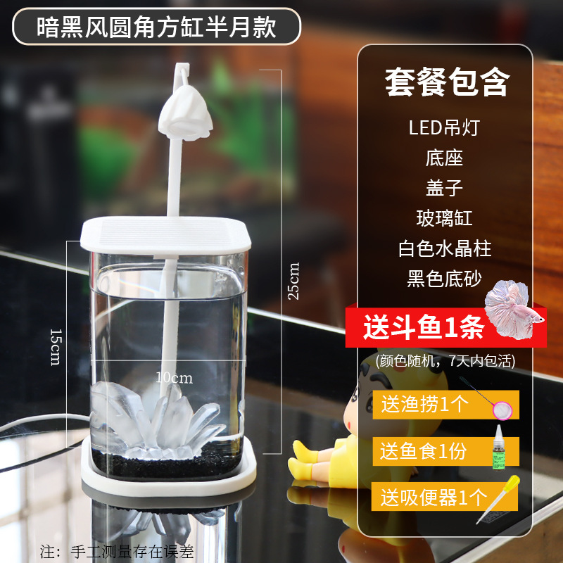 • 히비스커스 크리스탈 둥근 사각형 실린더 + 반달 수컷 물고기