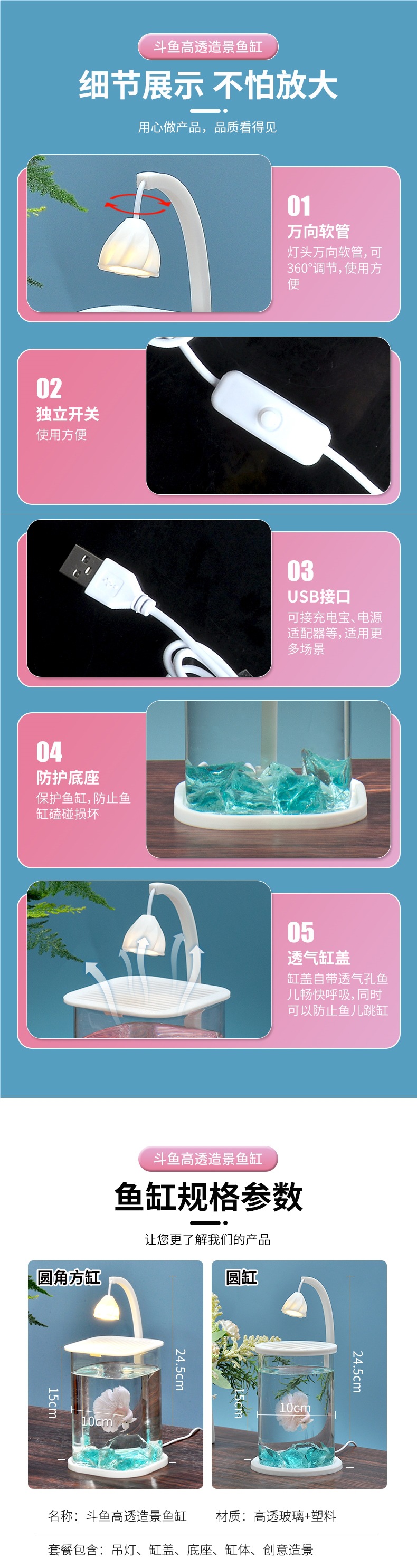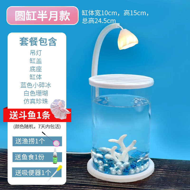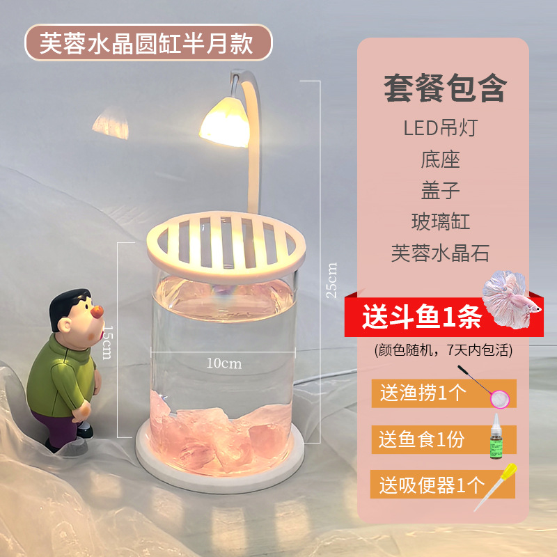 • 히비스커스 크리스탈 원형 실린더 + 반달 수컷 물고기