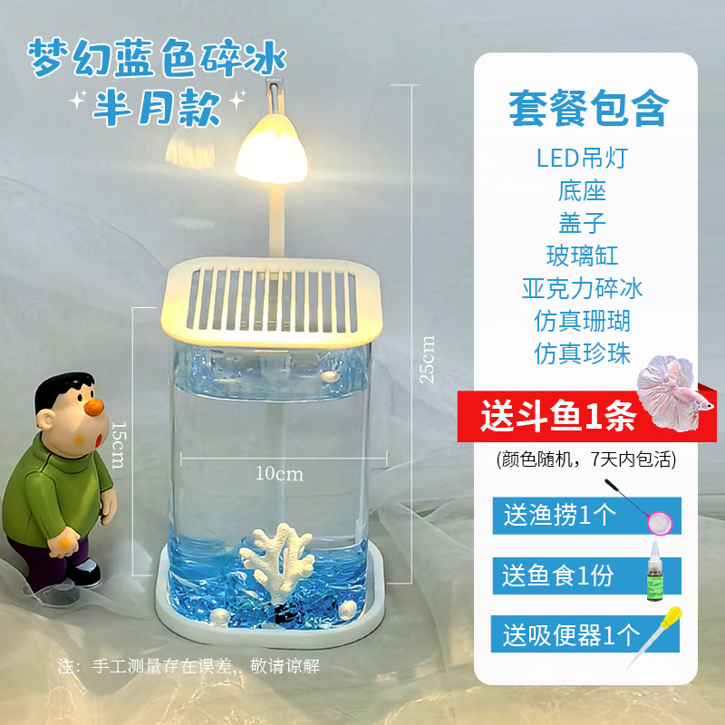 • 아이스 블루 크리스탈 원형 실린더 + 반달 수컷 물고기