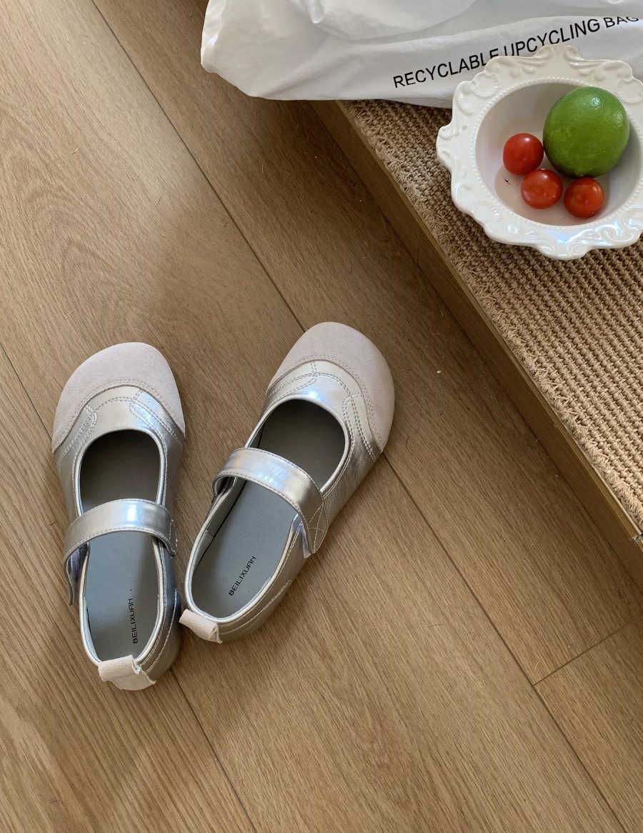 여성을위한 복고풍 스타일 플랫 메리 제인 신발 2025 한국어 버전 새로운 스크럽 소 가죽 라운드 발가락 부드러운 가죽 비건 버켄 슈즈