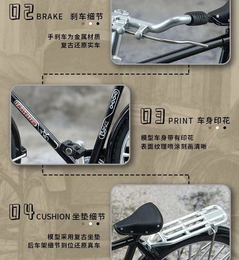 자전거 시뮬레이션 28 바 금속 자전거 전통적인 구식 복고풍 향수 합금 모델 장난감 자전거스토어 가기