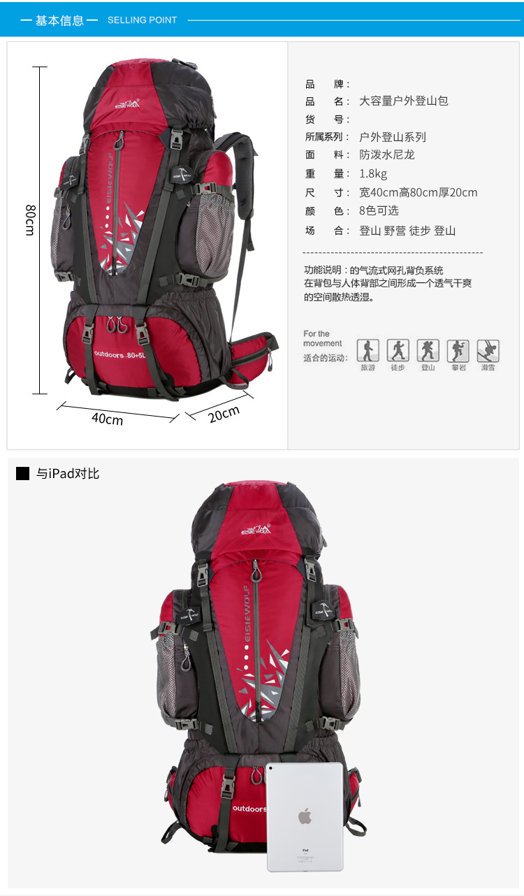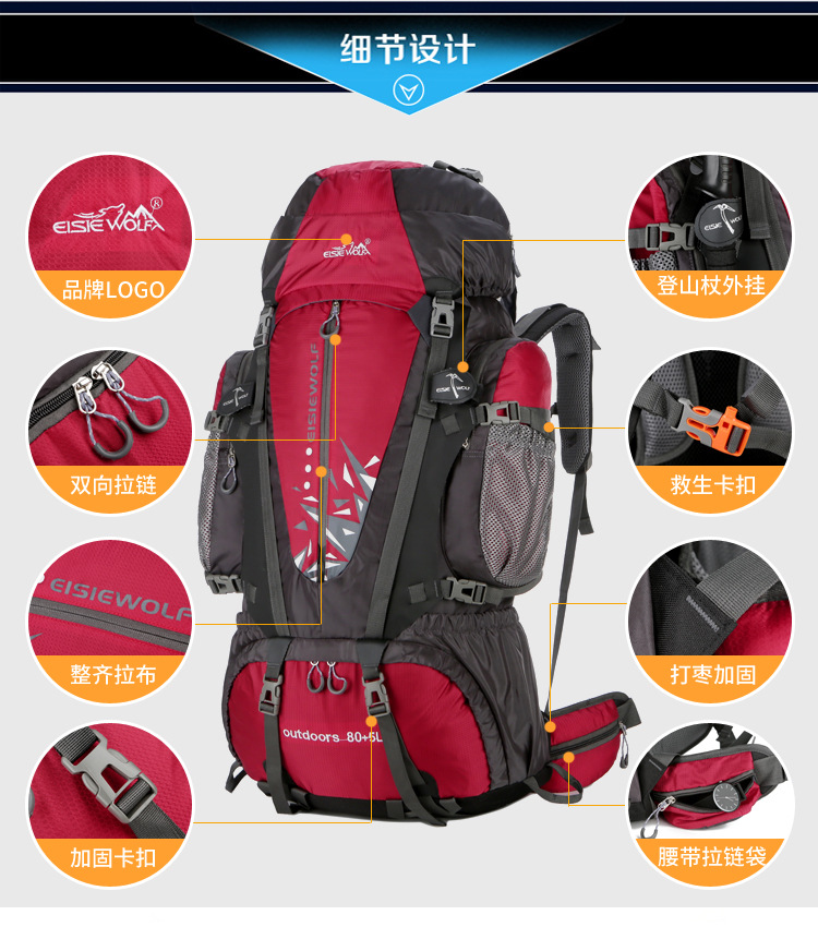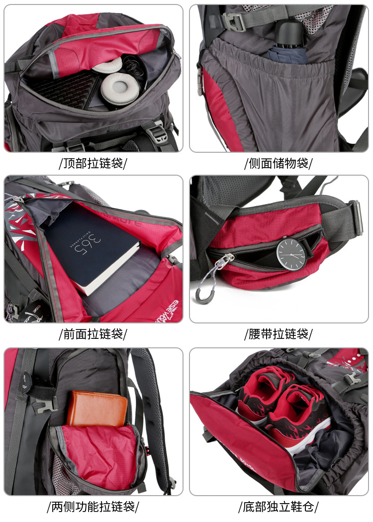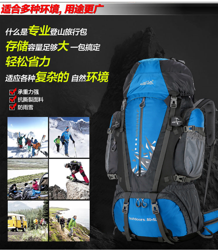 국경 간 야외 초대형 등산 가방 여행 배낭 하이킹 스포츠 가방 방수 및 내마모성 대형 배낭