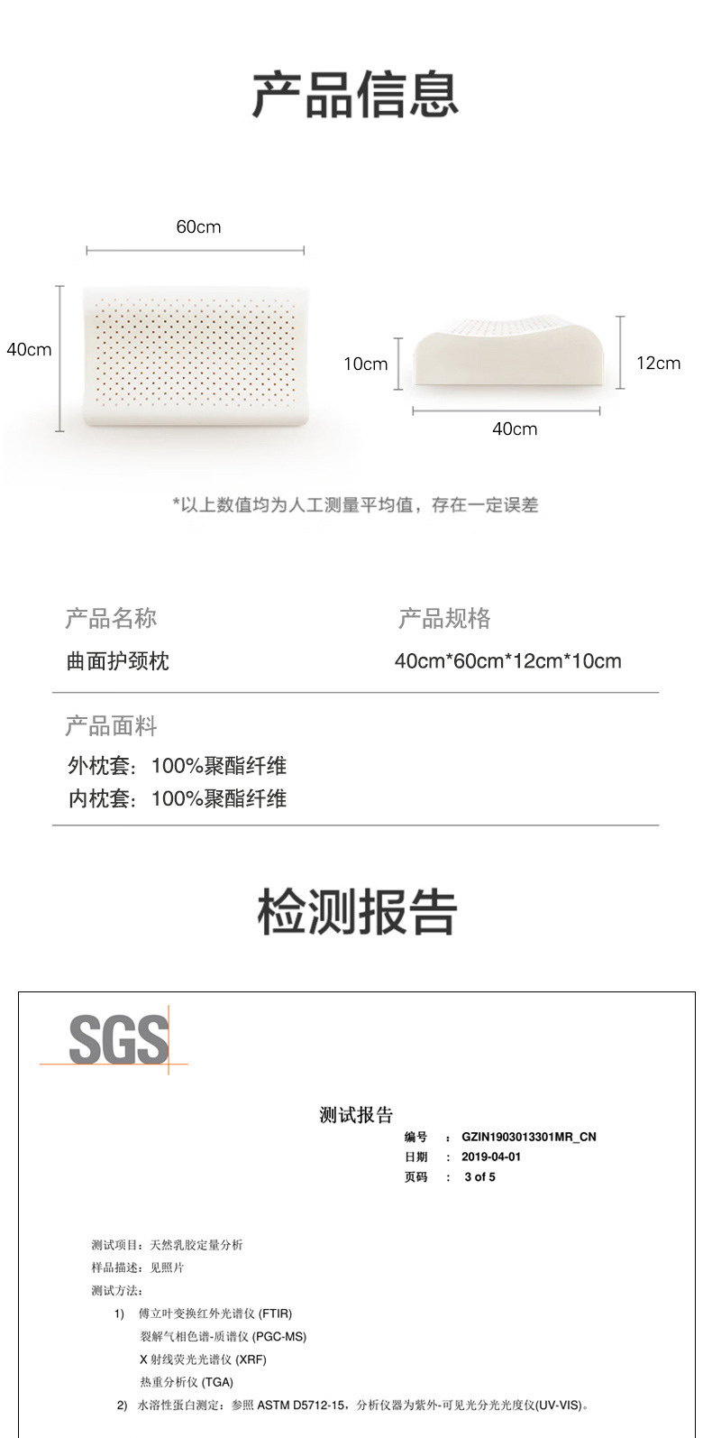 태국 라텍스 베개, 성인용 베개, 미용 베개, 목 베개, 마사지 베개 코어, 울프 톱 그레인 베개, 라텍스 베개 코어