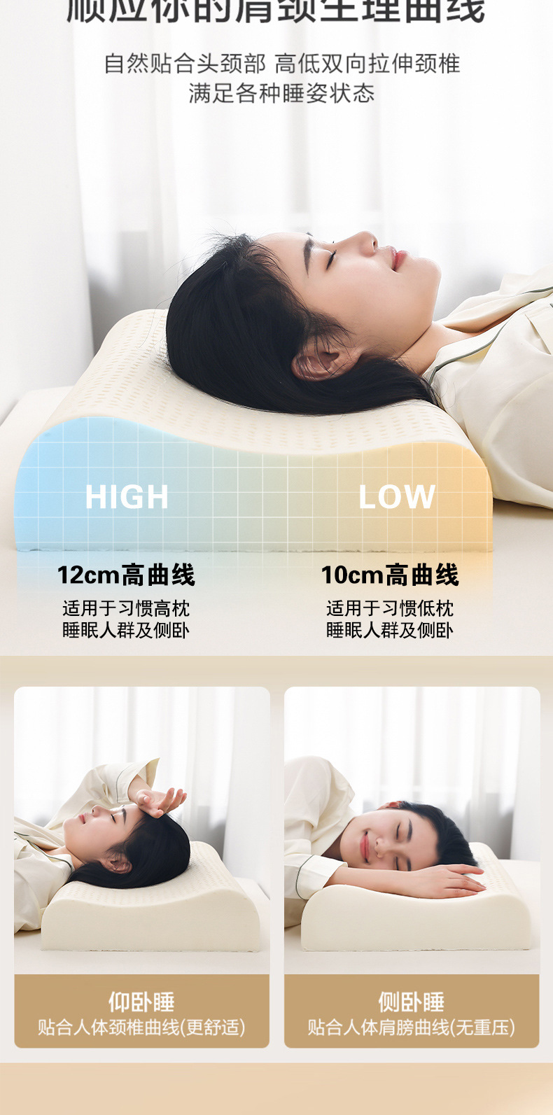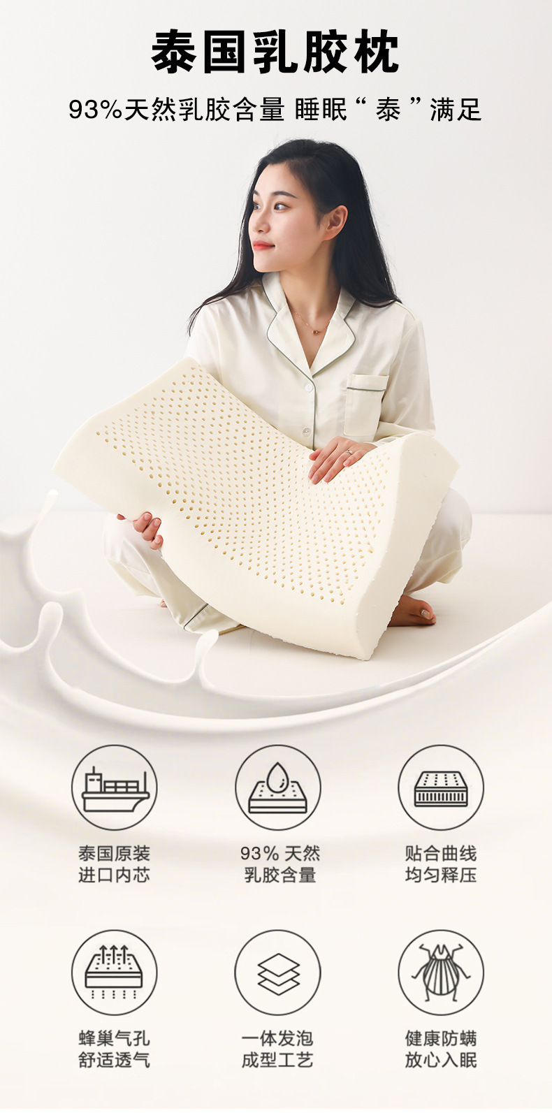 태국 라텍스 베개, 성인용 베개, 미용 베개, 목 베개, 마사지 베개 코어, 울프 톱 그레인 베개, 라텍스 베개 코어스토어 가기