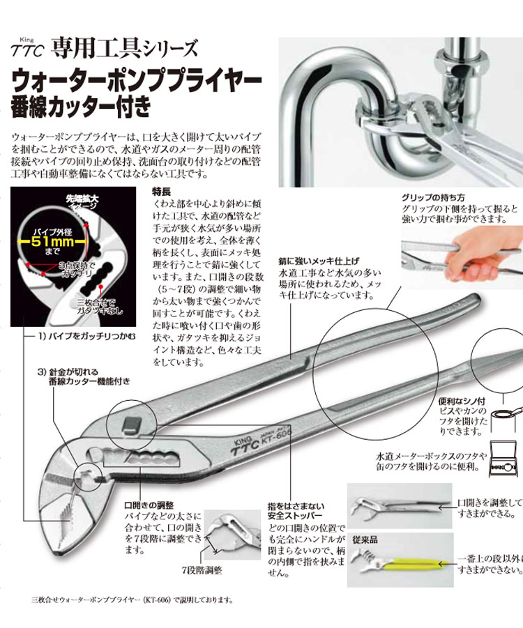 일본 수입 Kobayashi TTC 워터 펌프 펜치, 고속 수도관 펜치, 이동식 클램핑 펜치, 대형 개구부 조절식 파이프 렌치