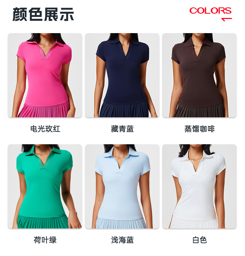 Caijue 크로스보더 스포츠 상의 여성용 속건성 POLO 셔츠 시원한 스포츠 라펠 반팔 패션 배드민턴 테니스웨어스토어 가기