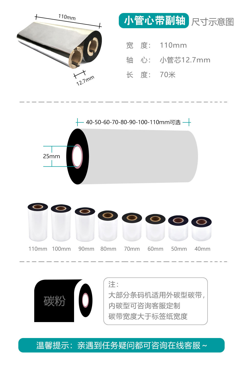 • [경제적인 왁스 베이스] 110mm*70M*5롤(작은 노치가 있는 이중 샤프트) [선명한 인쇄]