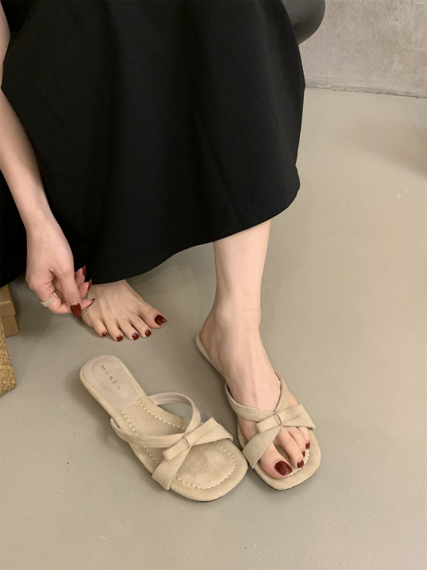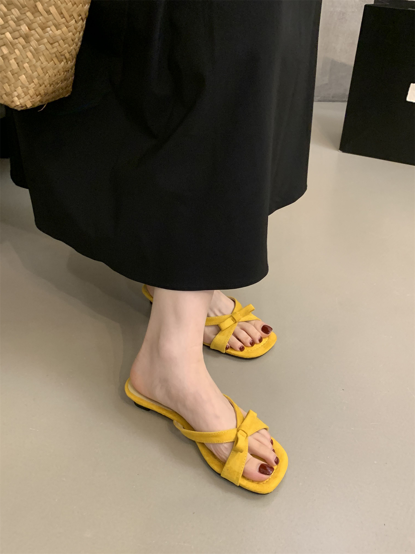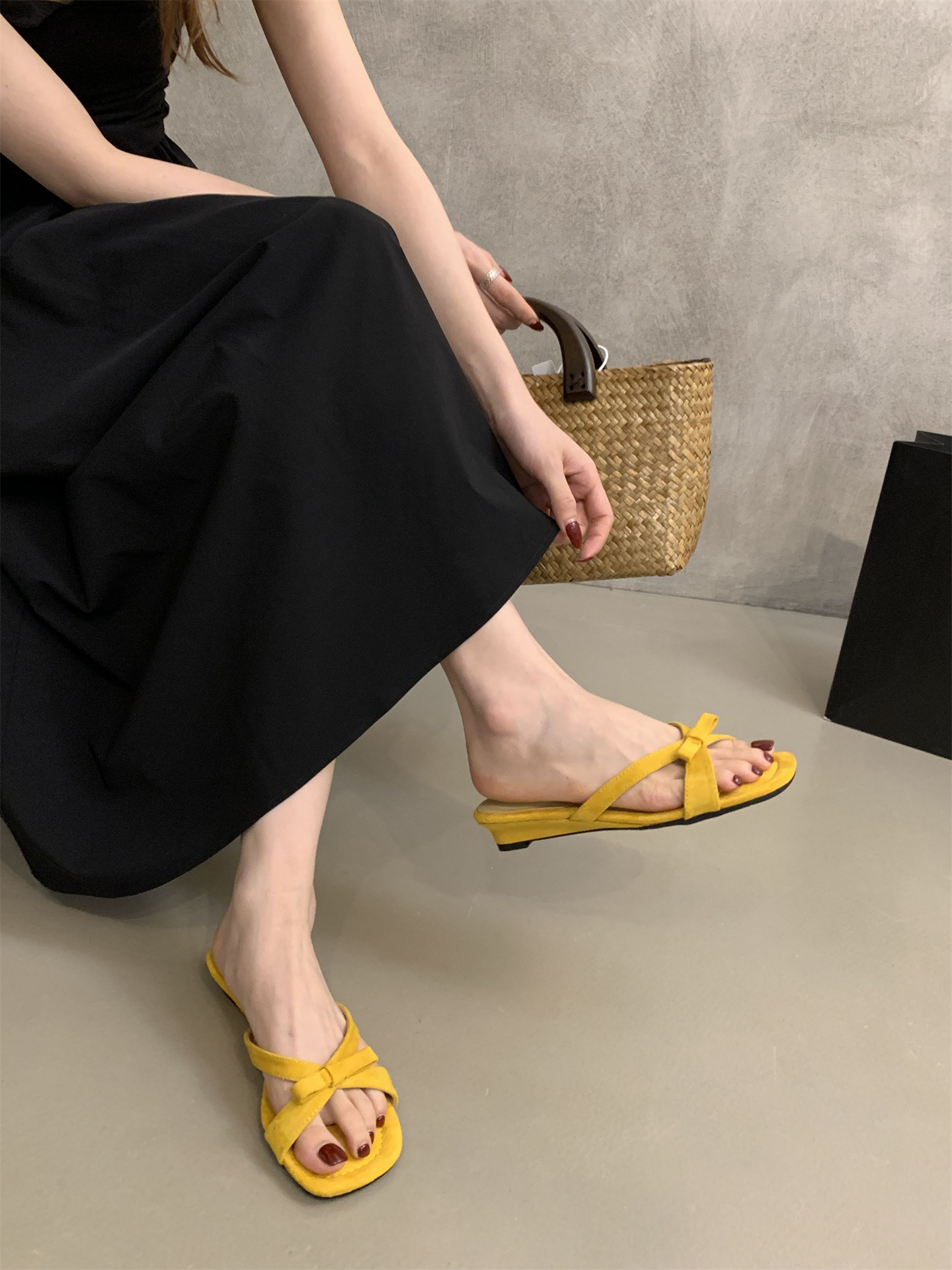 여름에 스커트를 입은 여성을 위한 프렌치 스타일의 아름다운 리본 오픈 토 샌들, 여성용 야외 착용을 위한 요정 스타일 스퀘어 토 웨지 샌들