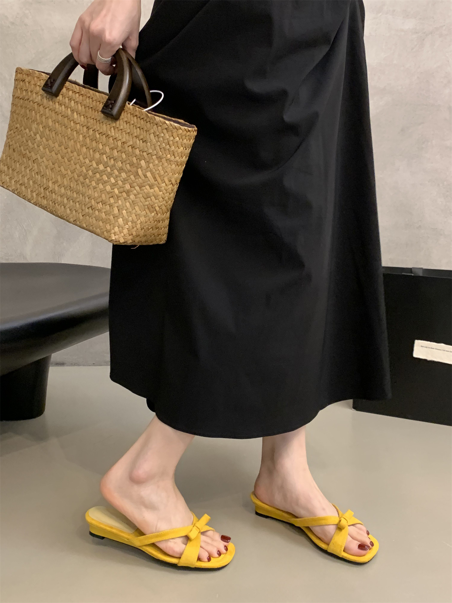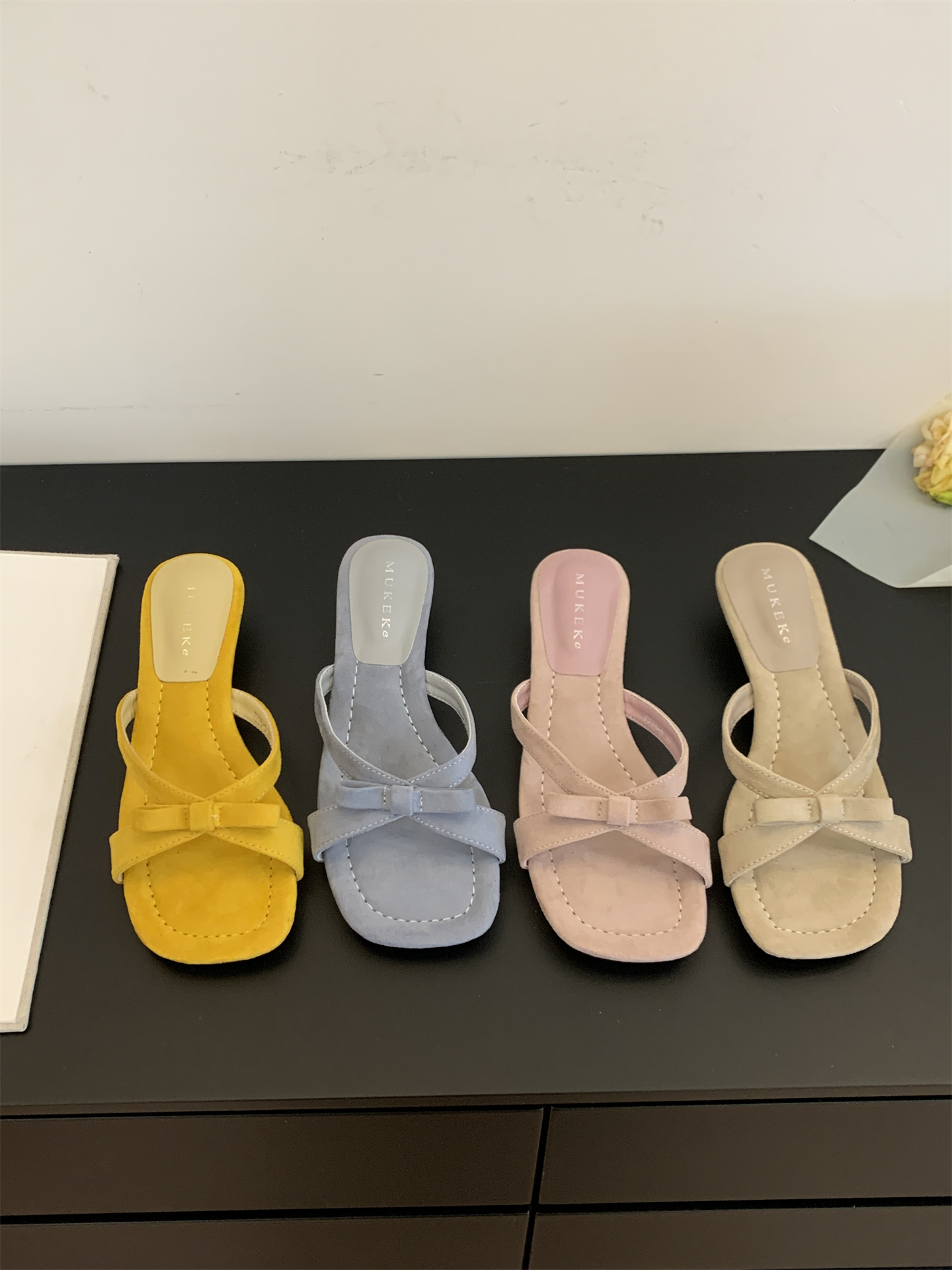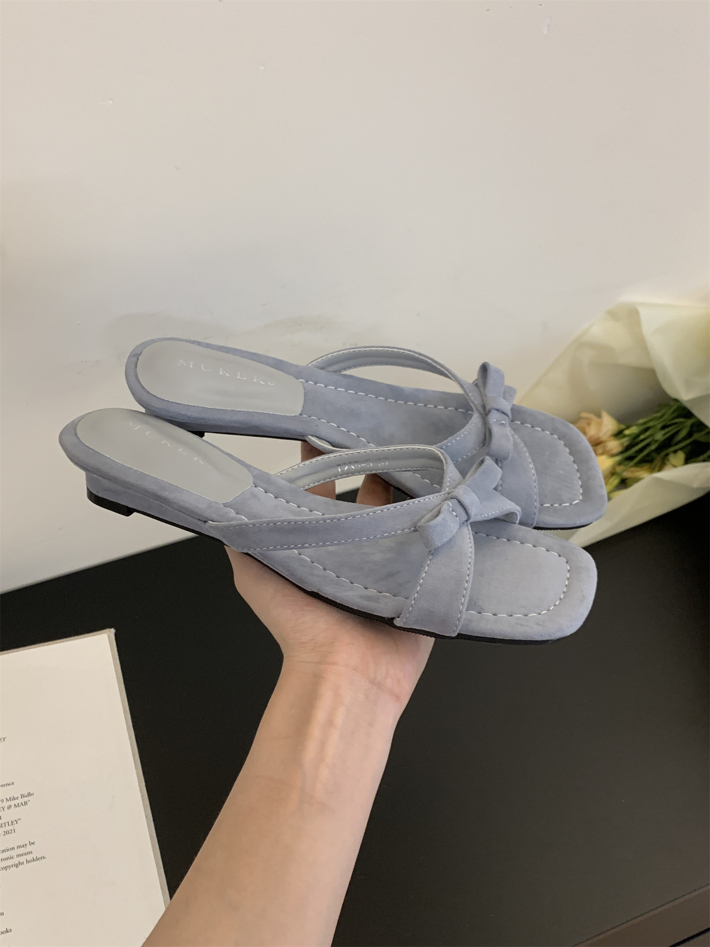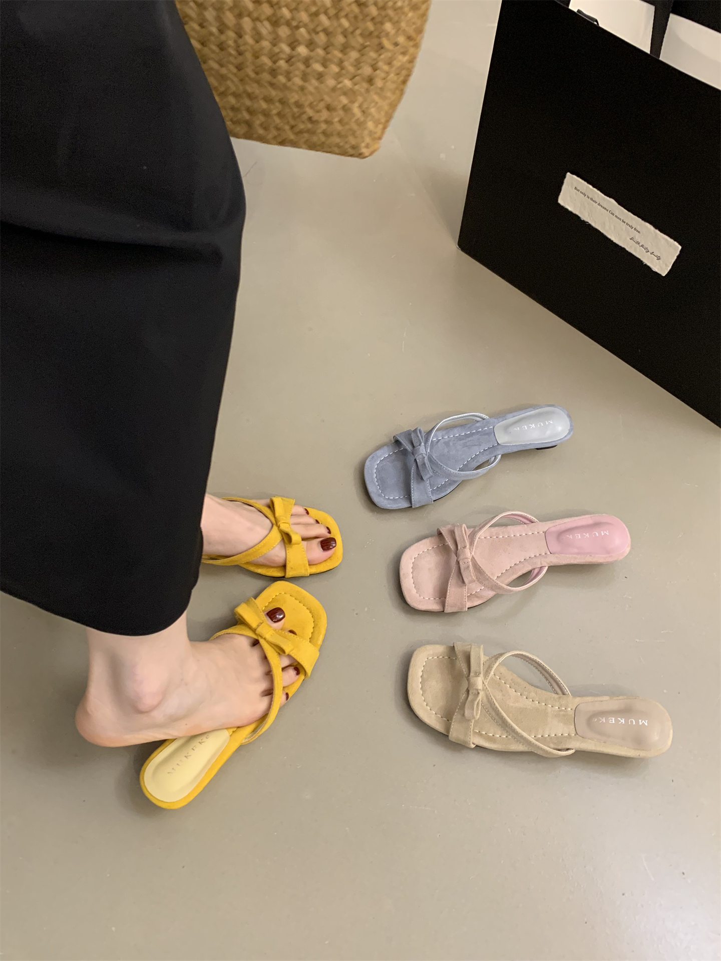 여름에 스커트를 입은 여성을 위한 프렌치 스타일의 아름다운 리본 오픈 토 샌들, 여성용 야외 착용을 위한 요정 스타일 스퀘어 토 웨지 샌들